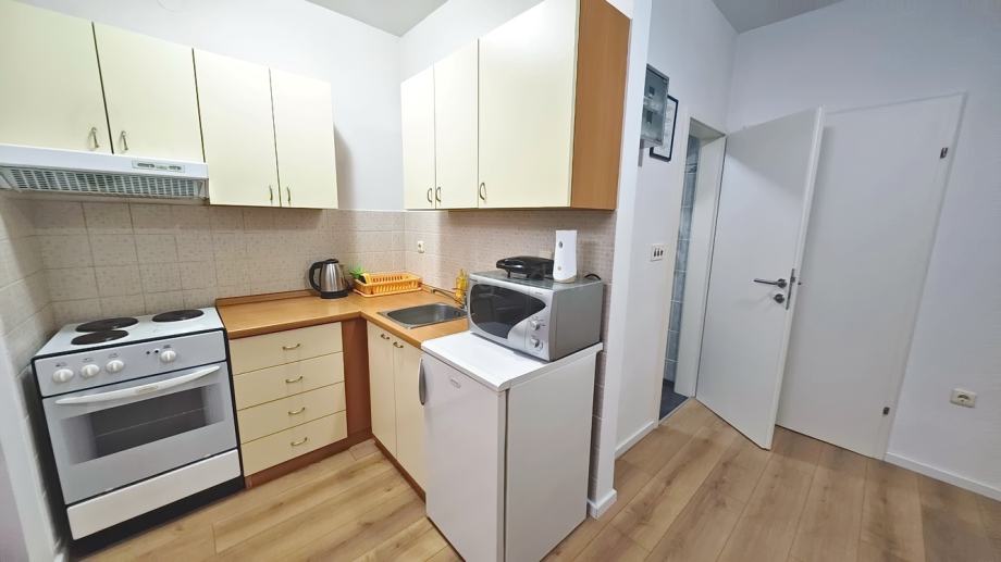 Smješten je u prizemlju uredne stambene zgrade te ima ukupnu površinu od 39 m². Sastoji se od ulaznog hodnika, dnevnog boravka s kuhinjom i blagovaonicom, spavaće sobe i kupaonice. Interijer je uredno održavan i opremljen kvalitetnom tehničkom opremom i ukusnim namještajem, spreman za korištenje bez dodatnih ulaganja.