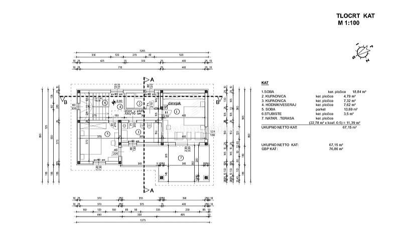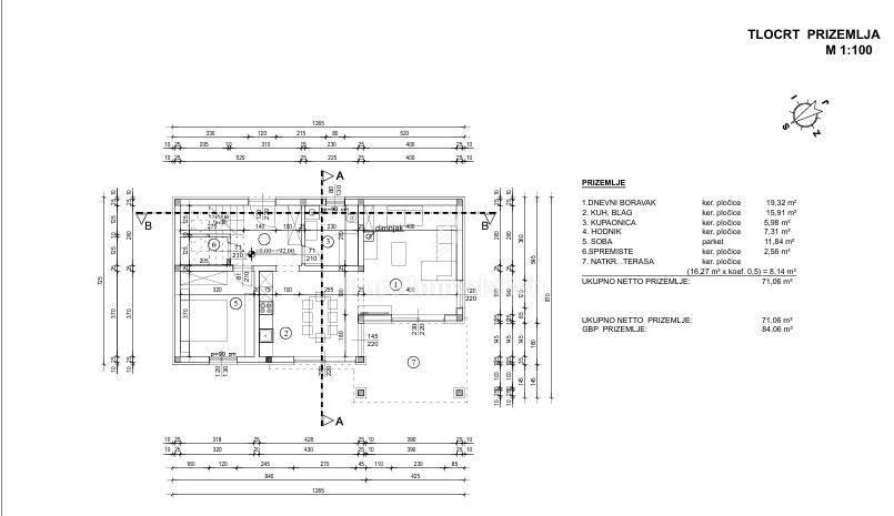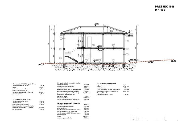 Ukupna neto površina kuće iznosi 138,21 m², dok bruto površina iznosi 169,92 m².