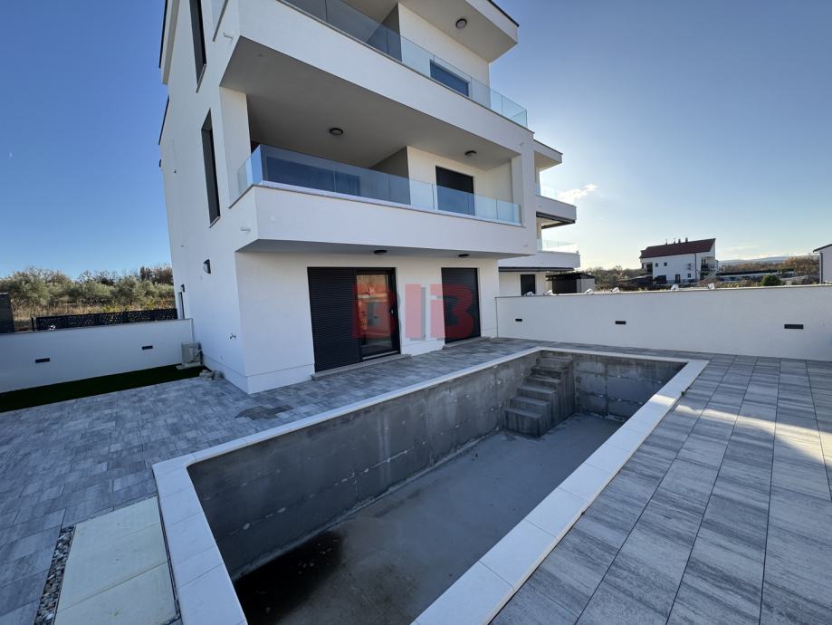 Stanu pripada okućnica-vrt, površine 115m2 na kojoj se nalazi bazen površine 24m2,, te 2 parkirna mjesta.