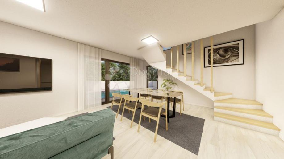 Vila ukupne površine 112.75 m2, prostire se na dvije etaže – prizemlje i kat – pažljivo osmišljene kako bi zadovoljile sve potrebe suvremenog stanovanja. Prizemlje se sastoji od ulaznog hodnika, kupaonice za goste te velikog open space prostora koji objedinjuje dnevni boravak, kuhinju i blagovaonicu. Iz dnevnog prostora pruža se direktan izlaz na uređenu okućnicu s bazenom, idealnu za opuštanje tijekom toplih ljetnih dana.