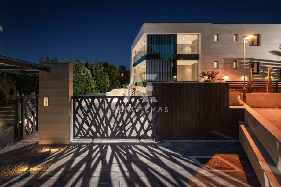 Malinska, novogradnja, Penthouse stambene površine od 113 m2, luksuzne Ville sa tri stambene jedinice. Luksuzni Penthouse komfornog rasporeda sastoji se od objedinjenog prostora dnevnog boravka, kuhinje, blagovaonice sa velikim panoramskim staklenim stijenama i izlazom na natkrivenu terasu s koje se pruža panoramski pogled na more, kupatilom, wc i tri spavaće sobe od kojih jedna ima svoju kupaonicu. U opremu Penthousa se ubrajaju visoko kvalitetna keramika, vrhunske sanitarije, parket, podno grijanje, klimatizacijski sustav u svim prostorijama, te pomno birana rasvjetna tijela koji apartmanu daju ugodan dojam u kojem ćete uživati!! Penthouseu pripada okućnica od 49 m2. na kojoj se nalazi bazen sa sunčalištem te izveden parking površine 12,50m2. za dva vozila. Luksuzan penthouse je od plaže udaljen samo 80 m, a od samog centra Malinske samo 300m, to su samo neke od mnogih prednosti ove tražene lokacije. Blizina svih potrebnih sadržaja kao i nesmetan pogled na more su zajamčeni!!