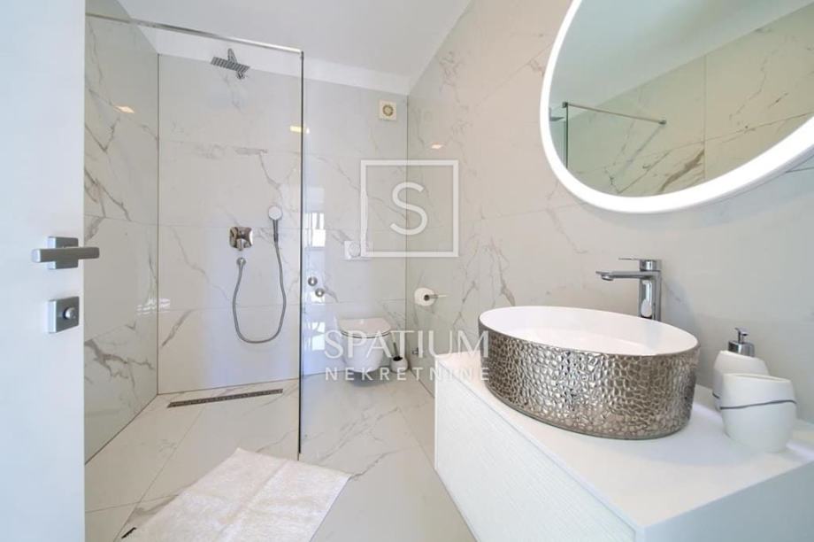 Potpuno i moderno namještena nekretnina, klimatizirana, opremljena podnim grijanjem. Nalazi se na mirnoj lokaciji, nedaleko od mora i plaže. Odličan izbor za obiteljsko korištenje ili turističku djelatnost.