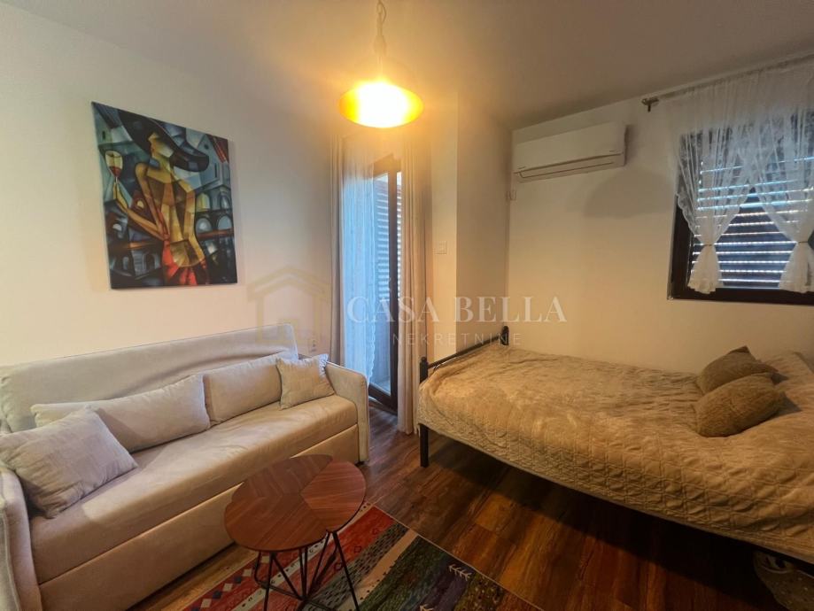 Dodatnu vrijednost daje manja lođa s lijepim pogledom na more. Na raspolaganju je i dio okućnice, koji se može koristiti kao parkirno mjesto.