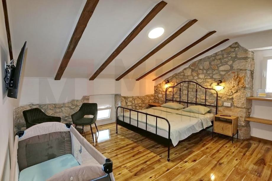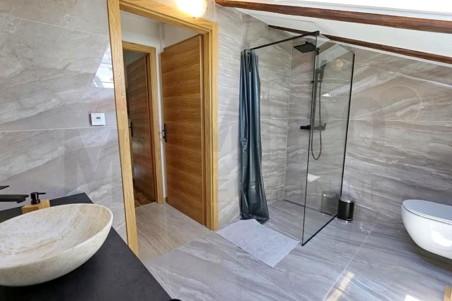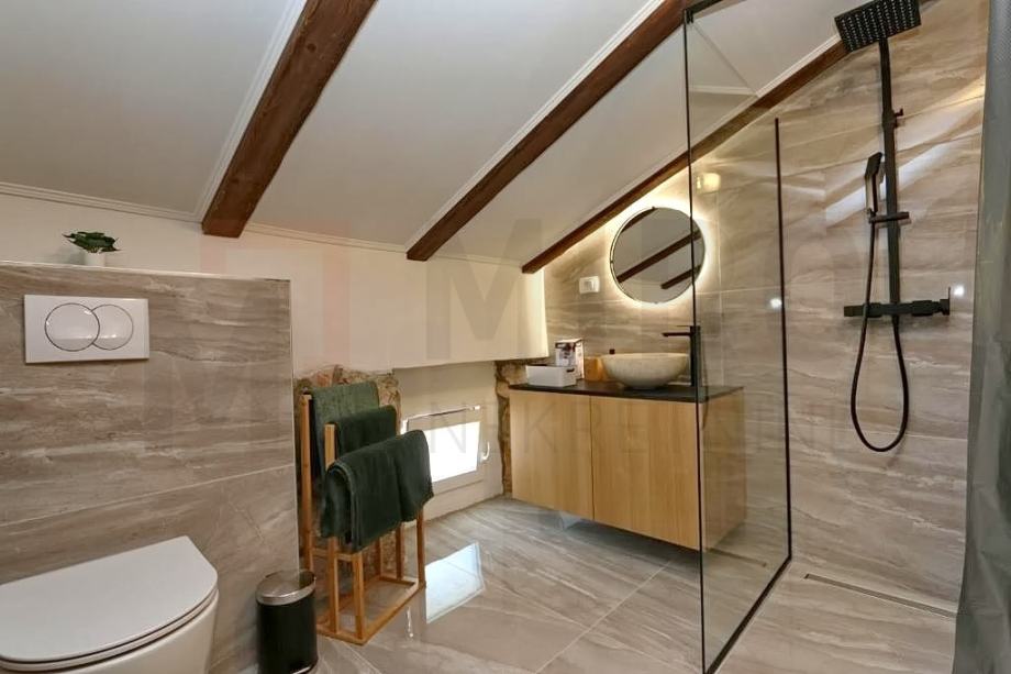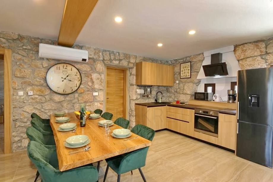 Otok Krk, Malisnka, šira okolica, moderno renovirana kamena dvojna kuća s bazenom. Kuća se prostire na 134 m2. Prizemlje sadrži wc, konobu te prostrani prostor koji objedinjuje dnevni boravak, blagovaonicu i kuhinju. Unutarnje stepenice vode na kat gdje se nalaze tri spavaće sobe i tri kupaonice. Kuća je obnovljena 2022g. s pažnjom i izrađena od visoko kvalitetnih materijala. Predmetna nekretnina ima okućnicu od 276 m2 u sklopu koje se nalazi bazen, sunčalište, pergola s roštiljem i prostor za druženje. Kuća je opremljena klima uređajima te podnim grijanjem u svim prostorijama izuzev konobe. PVC stolarija osigurava dobru izolaciju i energetsku učinkovitost. Kuća ima dva parkirna mjesta na spomenutoj okućnici. Kuća je u vlasništvu fizičke osobe i na ime njegovog prijenosa kupac je u obvezi plaćanja poreza na promet nekretnine u visini 3%. Vlasnik nekretnine jamči uredne vlasničke dokumente. Posjetite nas i pronađite kvadrat vašeg doma!