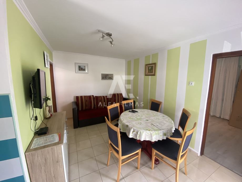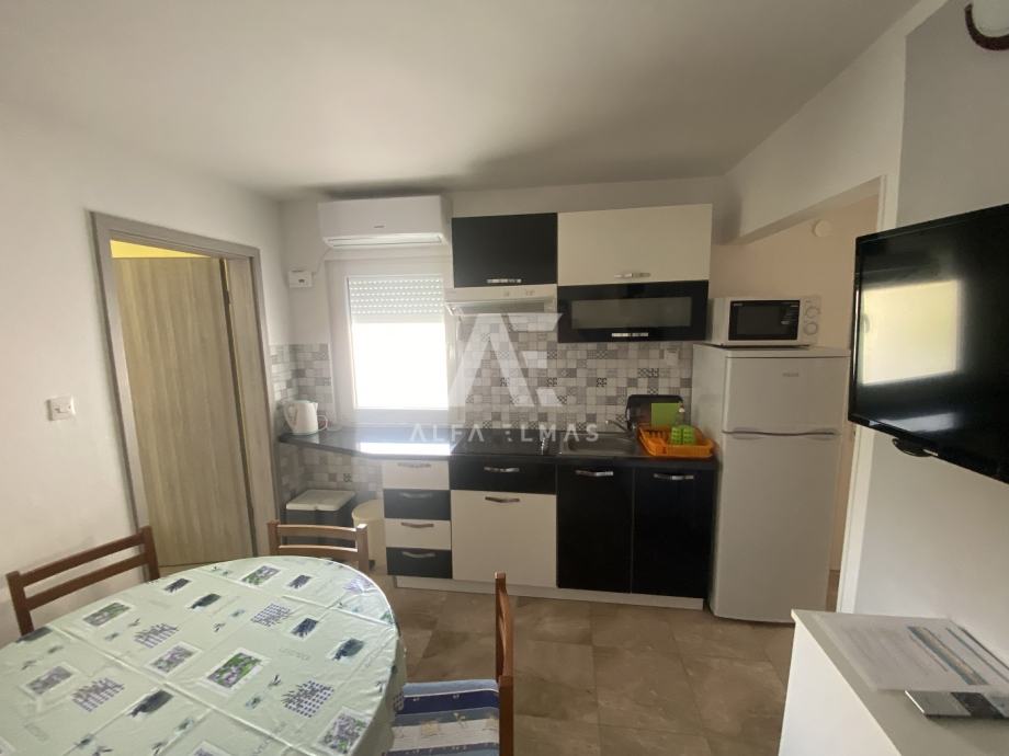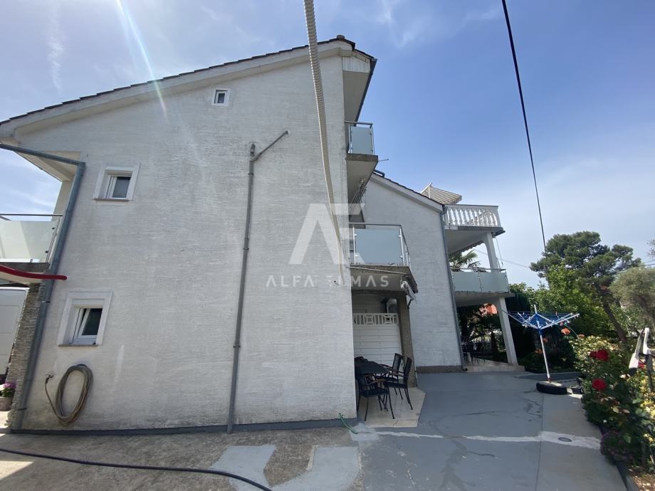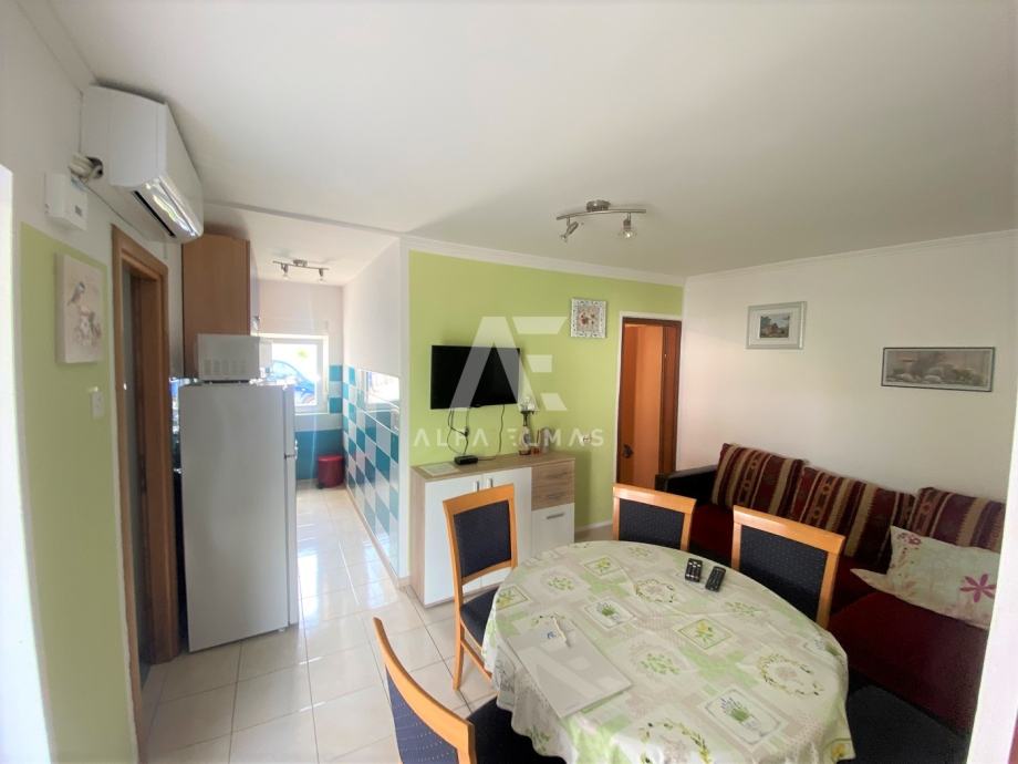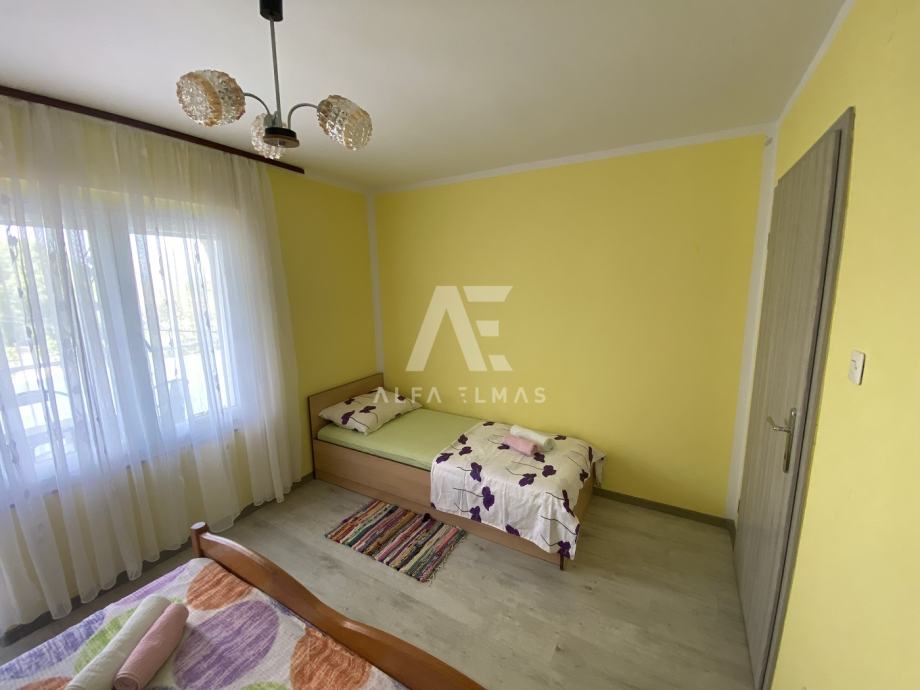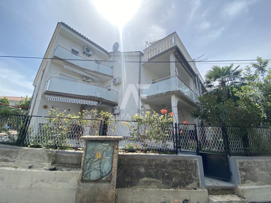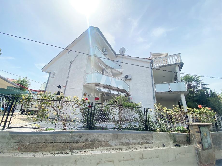 Malinska, okolica, dvojna kuća sa 5 apartmana, udaljena samo 600m od plaža. Dvojna kuća se nalazi u okolici Malinske, ukupne neto stambene površine 220m2, te se sastoji od dva kata. U prizemlju se nalazi studio sa jednom spavaćom sobom, kupaonicom i kuhinjom. Na prvome se katu nalaze dva dvosobna apartmana, od kojih svaki ima izlaz na balkon sa kojega se pruža prekrasan panoramski pogled na more i zeleni pojas. Na drugom se katu također nalaze dva apartmana, od kojih svaki ima svoju natkrivenu terasu na pogledom na more. U sklopu okućnice nalazi se natkriveno parkirno mjesto za 3 vozila, te dva nenatkrivena parkirna mjesta. Dvojna kuća sadrži i ljetnu kuhinju sa vlastitim WC-om. Ukupno sadrži 7 spavaćih soba, 5 kuhinja te 5 kupaonica. U svakom se apartmanu nalaze klima uređaji. Dokumentacija uredna.