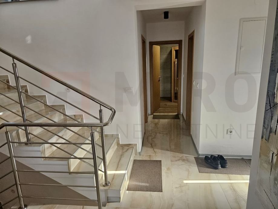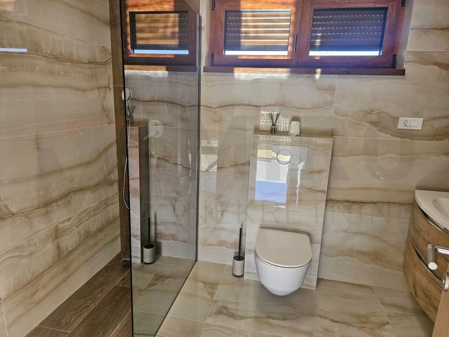 Otok Krk, Malinska, nova moderna kuća s okućnicom i bazenom koja pruža komfor. Kuća se prostire na 290 m2 i okružena je okućnicom od 560 m2 na kojoj se nalazi sunčalište sa bazenom i parking. U suterenu se nalazi garaža, spremište, vešeraj i konoba. U prizemlju od 105 m2 nalazi se kuhinja, blagavaona i dnevni boravak, spavaća soba s kupaonicom, predsoblje, sauna, kupaonica i terasa. Na katu su smještene 3 spavaće sobe i tri kupaonice, garederoba, predsoblje i terasa s koje se pruža prekrasan pogled na more. Nekretninu karakterizira odličan raspored prostorija, vrhunska oprema, visokokvalitetna keramika i podne obloge, PVC i ALU stolarija, podno rijanje na dizlicu topline. Nekretnina je u vlasništvu fizičke osobe i kupac je u obvezi plaćanja poreza na promet nekretnina u visini od 3 %. Vlasnik kuće jamči urednu vlasničku dokumentaciiju. Posjetite nas i pronađite kvadrat vašeg doma!