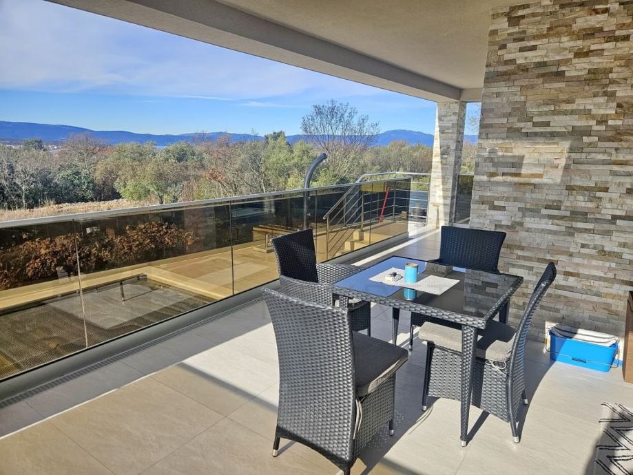 Malinska, okolica, moderna kuća s bazenom i pogledom na more! (prodaja)