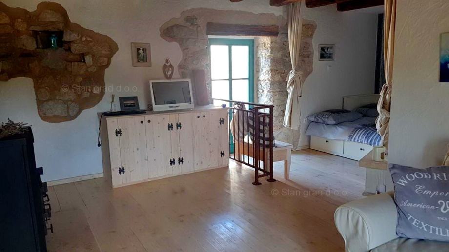U okviru naše ponude nekretnina na šarmantnom kvarnerskom lokalitetu otok Krk izdvajamo dobru priliku za akviziciju kvalitetne kuće za odmor ili obiteljsko stanovanje. Istaknuta je kuća smještena na zanimljivoj lokaciji nedaleko centra primorskog odredišta Malinska. Po tipu građevine, ovo je kuća u nizu dvokatnica s visokim potkrovljem. Šarmantna kuća se prostire dakle preko 3 etaže visinski korisne površine. Ukupna površina obuhvaćena ovom kućom je 120 m2. U navedenoj površini nalaze se u prizemlju ulazni prostor, praonica, wc, dnevni boravak, kuhinja s blagovaonicom, te izlaz na terasu i okućnicu s bazenom. Vanjskim stepeništem dolazi se na prvi kat gdje se nalazi dnevni boravak, 2 spavaće sobe i kupaona. Na drugom katu se nalazi jedna spavaća soba te kupaonica, a u visokom potkrovlju dvije spavaće sobe. Iznimno održavani interijer nekretnine izvrsno je opremljen raskošnim i kvalitetnim namještajem te suvremenom tehničkom opremom. Posebnu čar ovom posjedu daje iznimno uređena okućnica koja sadržava bazen i sunčalište. U vrtu ove kuće je dovoljno prostora za parkiranje dva automobila. Osim navedenog, treba napomenuti da kuća ima lijep pogled na ovo primorsko mjesto. Predmetna je kuća u vlasništvu fizičke obveze i kod prijenosa vlasništva podliježe obračunu poreza na promet nekretnina u visini 3%. Vlasnik ove kuće jamči brz i lak prijenos vlasništva na kupca ove nekretnine. Srdačno se veselimo vašem pozivu ili osobnom dolasku u našu poslovnicu na otoku Krku. Posrednik Stan Grad Immobilien će vam pomoći u prijenosu vlasništva nekretnine i računa za komunalne usluge.