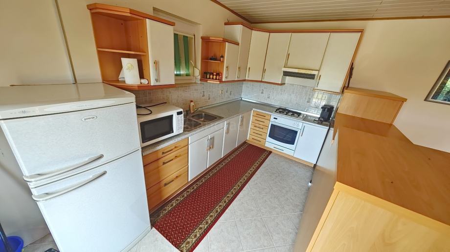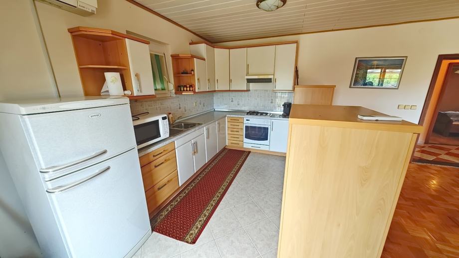 Kuća se sastoji od dva odvojena stana. Nekretnina obuhvaća ukupnu površinu od 220 m2. Ovom površinom su obuhvaćeni u suterenu konoba i kotlovnica. U prizemlju i na 1. katu se nalaze dva apartmana svaki površine 100 m2 koji se sastoje od dnevnog boravka i kuhinje s blagovaonicom, 2 spavaće sobe, kupaonice i lođe. Unutarnji prostori nekretnine su osobito dobro održavani te u potpunosti opremljeni potrebnim tehničkim uređajima i vrlo kvalitetnim namještajem. Uz opisanu kuću je vezana i dobro organizirana okućnica.
