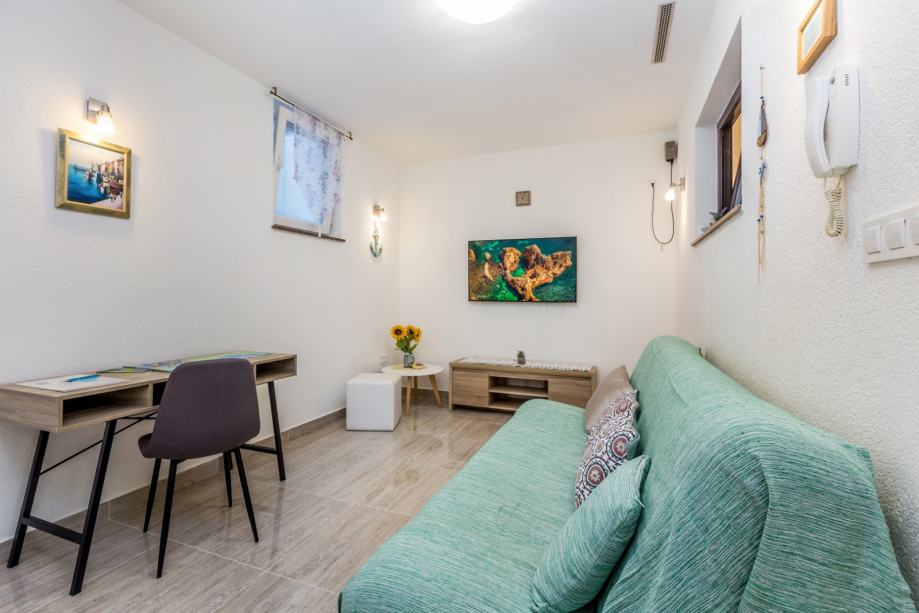 Na atraktivnoj lokaciji u Malinskoj na otoku Krku, nalazi se ovaj šarmantni jednosobni apartman idealan za miran odmor ili pametnu investiciju. Smješten u suterenu stambene zgrade, prostire se na 37 m² i nudi funkcionalan raspored koji uključuje dnevni boravak povezan s kuhinjom i blagovaonicom, jednu spavaću sobu te kupaonicu.