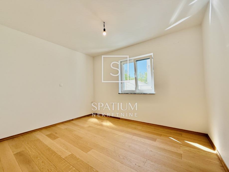 Jedinica u prizemlju zrcalna je preslika gornjeg prostora, a iz nje se izlazi na okućnicu površine 140 m², što dodatno doprinosi osjećaju privatnosti i komfora. Objekt je opremljen troslojnom PVC stolarijom s električnim roletnama, kombinacijom keramičkih i parketnih podova te sustavom grijanja i hlađenja putem klima uređaja.