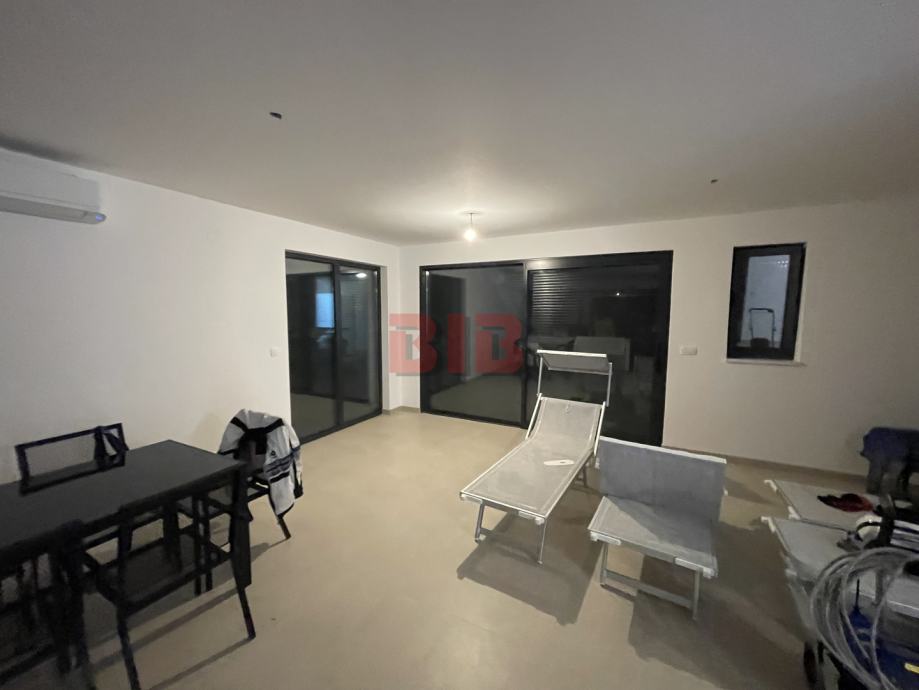 Vrlo kvalitetna gradnja i oprema,alu stolarija,samo 4 stana,u zgradi,svaki sa posebnim ulazom, veliko ograđeno dvorište,savršeno mirna lokacija, slijepa ulica,samo 100 metara od mora-plaže.