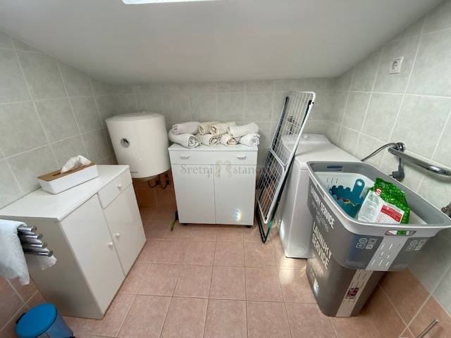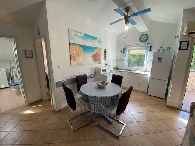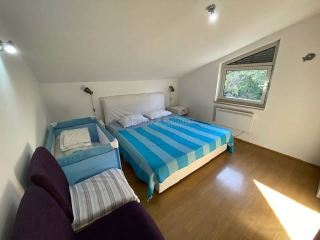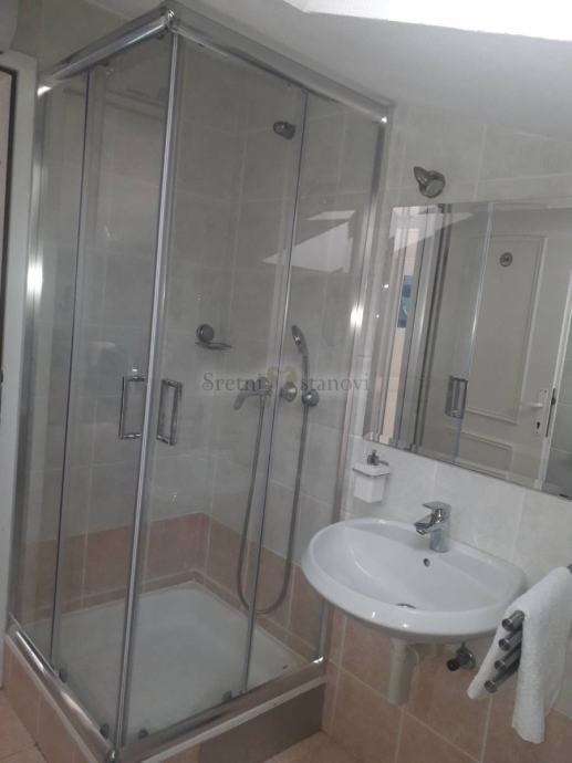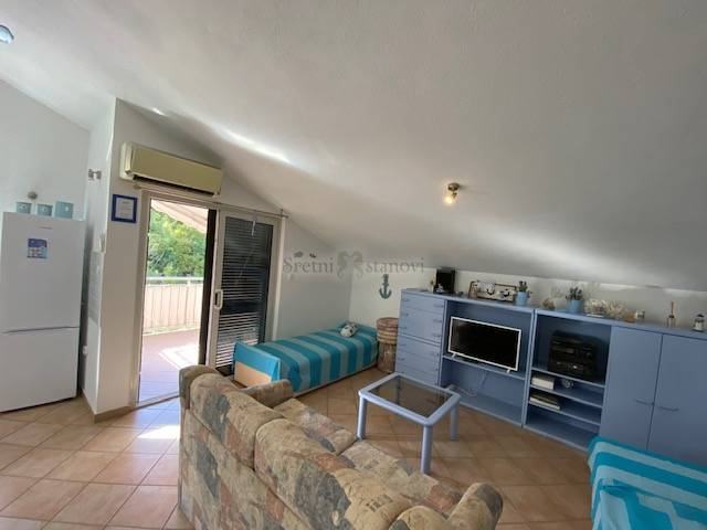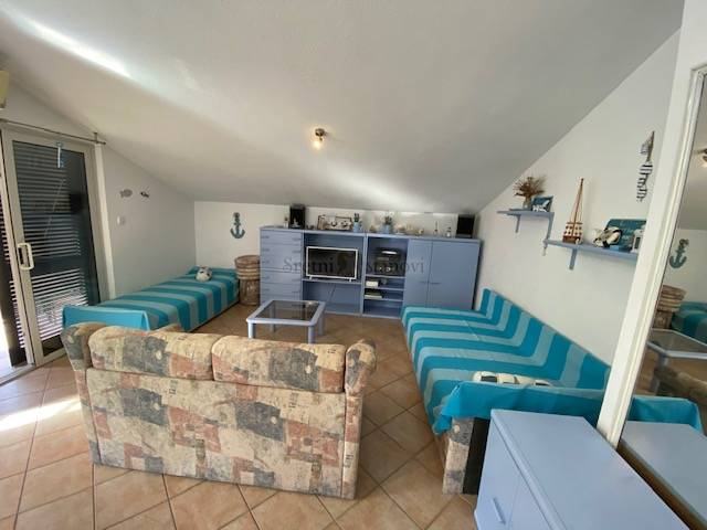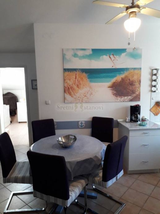 Lijepi, ugodan ,uredan i održavan stan u stambenoj zgradi na drugom katu manje zgrade, nedaleko mora i plaža ( cca 150 m). Zgrada je na mirnoj, ugodnoj lokaciji, idealno za odmor i vikende, okružena zelenilom, a opet blizu šetnice i plaže. Stan se sastojii od jedne spavaće sobe, kupaone, dnevnog boravka, kuhinje s blagovaonom i lijepe natkrivene loggie/balkona s ugodnim pogledom. Grijanje je na klima uređaj i norveški radijator. Parkirno mjesto za stan, jedno, je u privatnoj okućnici zgrade. Čisto vlasništvo. Stan se prodaje kako je prikazano na fotografijama sa namještajem i opremom.