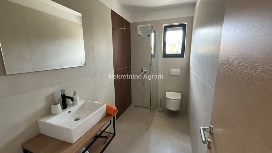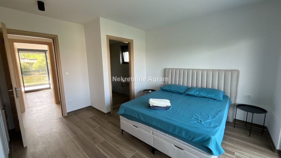 Još jednom ističemo ekstra lokaciju u miru i tišini, 100 m od mora, izuzetno kvalitetnu novogradnju ( alu stolarija, el.rolete, 12 cm izolacija-grafitni stiropor, kompletno i kvalitetno namješten apartman sa klimatizacijom ( svaka soba zasebnu klima jedinicu i tv), podno grijanje, vrhunska keramika i stolarija,moderna kuhinja po mjeri.