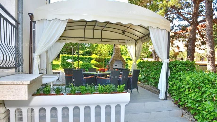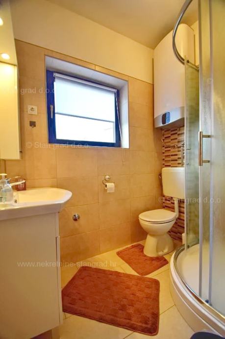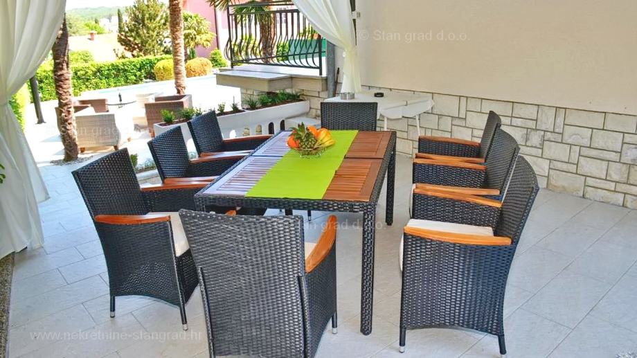 Iz ponude odličnih nekretnina kod naše agencije na sjevernom Jadranu ističe se moderna kuća za turizam sagrađena na području tražene hrvatske i kvarnerske obalne regije otok Krk. Ova poželjna kuća se nalazi na vrlo dobroj lokaciji blizu centra poznatog turističkog odredišta Malinska. Gledajući strukturno, ovo je samostojeća kuća katnica. Vrlo lijepa građevina je izvedena na 3 prostorno iskoristive etaže (suteren i dvije etaže površine cca 60 m2). Kuća se sastoji od 2 odvojena stana. Kuća zauzima prostor ukupne površine 155 m2. U toj su površini obuhvaćeni u suterenu dvije lođe i dvije ljetne kuhinje. Na svakoj etaži nalazi se po jedan dvosoban stan. Odlično održavana unutrašnjost nekretnine je u potpunosti uređena kvalitetnim namještajem i svom potrebnom tehničkom opremom. Dodanu vrijednost ovom cijelom objektu daje okućnica oplemenjena bazenom s morskom vodom površine 30 m2 i sunčalištem i prostorom za uživanje. Prostrana okućnica opisane nekretnine uređeno je komotno parkiranje više vozila. Uz prethodno, važno je napomenuti da kuća ima vrlo lijep otvoreni pogled na more. Vlasnik ove nekretnine je fizička osoba te se prilikom prijenosa njenog vlasništva kupcu obračunava porez na promet nekretnine u iznosu 3%. Vlasnik garantira kompletnu i urednu tehničko-vlasničku dokumentaciju te jednostavan prijenos nekretnine na kupca. S veseljem ćemo prihvatiti ulogu vašeg partnera u potrazi i sigurnoj akviziciji nekretnine ne Kvarneru. Agenti ureda Stan Grad Immobilien će vam rado pomoći u administrativnim poslovima oko prijenosa vlasništva i računa nekretnine.
