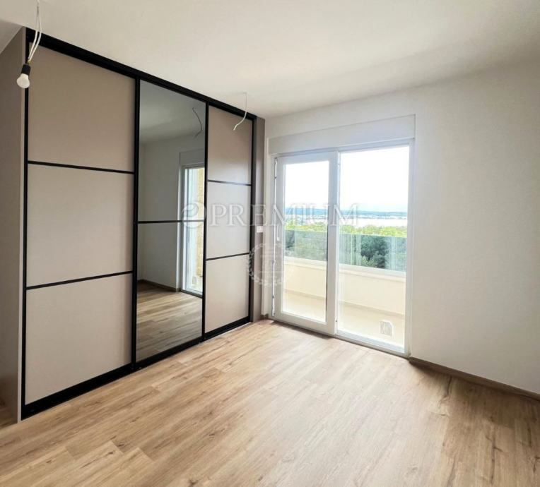 Na prodaju je luksuzna dvojna kuća ukupne stambene površine 152 m2, okućnica 280 m2, parkiralište cca 80 m2. Kuća se prostire na dvije etaže s vrhunskom završnom obradom i modernim dizajnom koji uključuje visokokvalitetne materijale. Smještena u mirnoj slijepoj ulici iznad zelene zone, koja pruža potpunu privatnost i uživanje u neometanom pogledu na more.