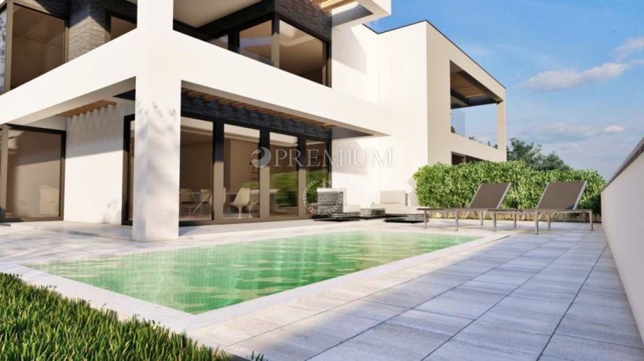 U prizemlju se nalazi ulazni prostor, kupaonica, spavaća soba, kuhinja s blagovaonicom i dnevnim boravkom, s izlazom na terasu i okućnicu, na kojoj će se nalaziti bazen, sunčalište, i dva parkirna mjesta.