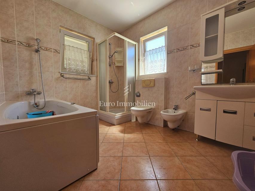 Kuća ima lijepi, panoramski pogled na more. Namješteno. Prostrana okućnica, mogućnost izgradnje bazena, nekoliko parkirnih mjesta.