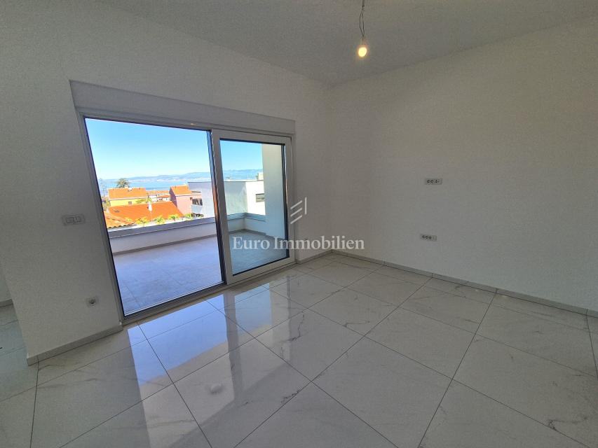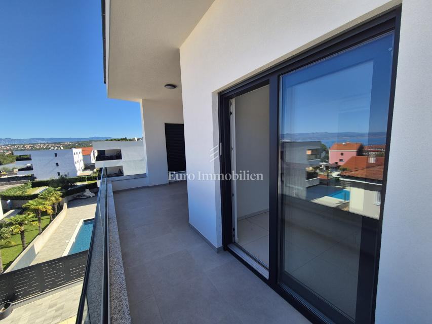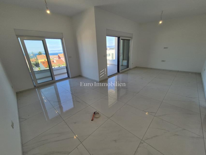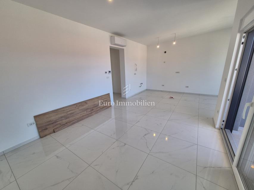 Na mirnoj lokaciji u Malinskoj prodaje se jedna etažna jedinica u novogradnji koja u naravi predstavlja dva potpuno odvojena funkcionalna prostora. Glavni dio - stan - nalazi se na drugom katu, ukupne površine 77,27 m², i obuhvaća dvije spavaće sobe, kupaonicu, dodatni WC te prostrani otvoreni prostor koji povezuje dnevni boravak, kuhinju i blagovaonicu, a iz kojeg se izlazi na veliki balkon s prekrasnim pogledom na more.
