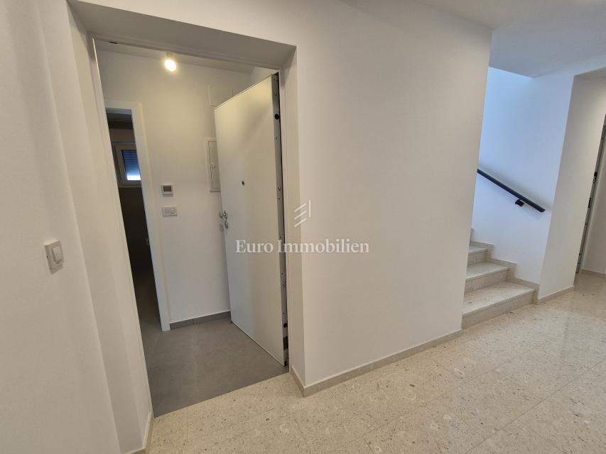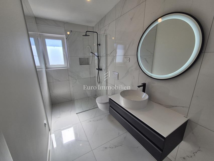 Cijela nekretnina izvedena je kvalitetno i suvremeno: svi prostori su klimatizirani, u dnevnom boravku je postavljeno podno grijanje, ugrađena je PVC stolarija s roletama, a korištena je vrhunska keramika i sanitarije. Apartmanu pripadaju dva parkirna mjesta, a u cijenu je uključen PDV.