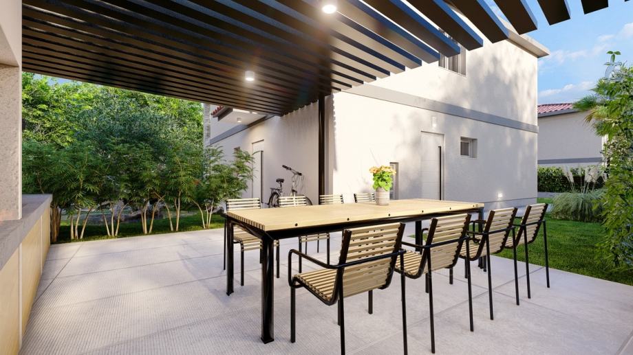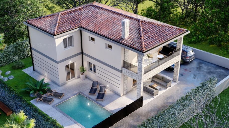 Kod agencije Stan Grad Immobilien na Kvarneru je u prodaji iznimna mediteranska urbana kuća građena po modernom projektu na razvijenom i atraktivnom sjevernojadranskom području otok Krk. Ova je kuća smještena u lijepom primorskom mjestu Malinska na vrhunskoj lokaciji nedaleko mora. Prema vrsti objekta, građevina se može kategorizirati kao samostojeća kuća katnica. Suvremeno građena kuća se sastoji od prostora raspoređenog na ukupno 2 etaže. Površina ove kuće iznosi ukupno 170 m2. Tom površinom obuhvaćeni su dnevni boravak i kuhinja, 4 spavaće sobe, 4 kupaonice i terasa. Posebnu čar ovom posjedu daje iznimno uređena okućnica koja sadržava bazen i sunčalište. Vlasništvo ovog posjeda osigurava dva parkirna mjesta. Osim ranijih karakteristika, važno je kazati kuća ima lijep pogled na more i priobalje. Ova je kuća vlasništvo fizičke osobe i na prijenos njenog vlasništva obračunava se porez na promet nekretnina u visini 3%. Prodavatelj kuće jamči urednu vlasničku dokumentaciju te brz prijenos vlasništva nekretnine. Srdačno ste dobrodošli na naš zlatni otok Krk i u našu kvarnersku poslovnicu. Posrednik Stan Grad Immobilien će vam pomoći u prijenosu vlasništva nekretnine i računa za komunalne usluge.
