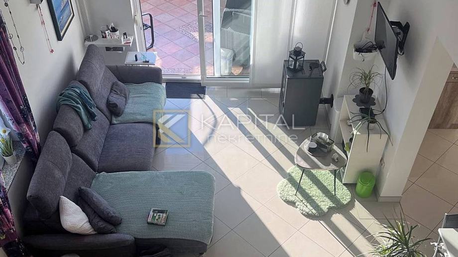 Dvoetažni stan na drugom katu. Sastoji se od dvije spavaće sobe, dvije kupaonice, kuhinje sa blagovaonom, dnevnog boravaka sa galerijom i terase. Podno grijanje, klima, PVC stolarija. Ima vlastito parkirno mjesto. Ulaz u zgradu dijele 4 stana, vlasnici koji dolaze samo po ljeti. Nalazi se u mirnoj ulici, 300 m do centra i mora. Za sve informacije nazovite +385 99/2196-354