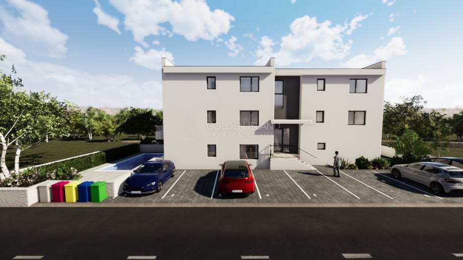 Stan S2 u modernoj vili sa bazenom, 600 m od mora i centra Malinske, pogled na more, mirna ulica, sa bazenom.