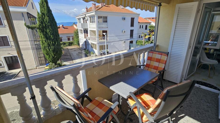 Na samo 3 minute hoda od centra Malinske, u manjem objektu od 5 stambenih jedinica, prodaje se stan na 1. katu odličnog raporeda. Sastoji se od koji se sastoji od kuhinje i dnevnog boravka, sobe i kupaonice te lijepim balkonom s djelomičnim pogledom na more.