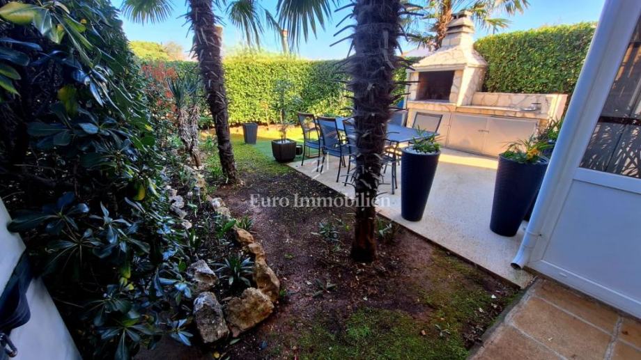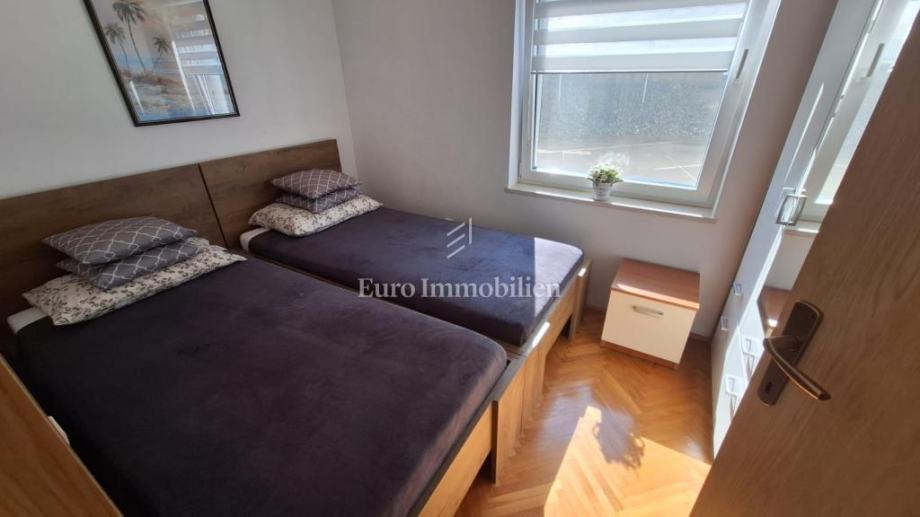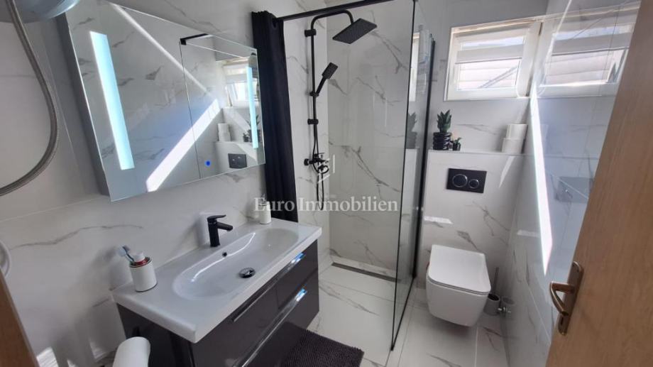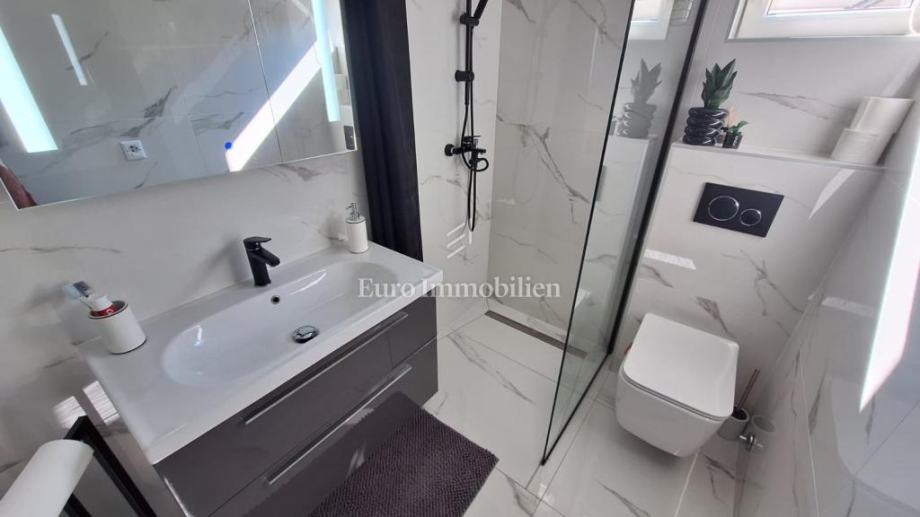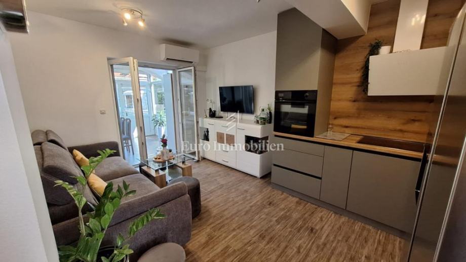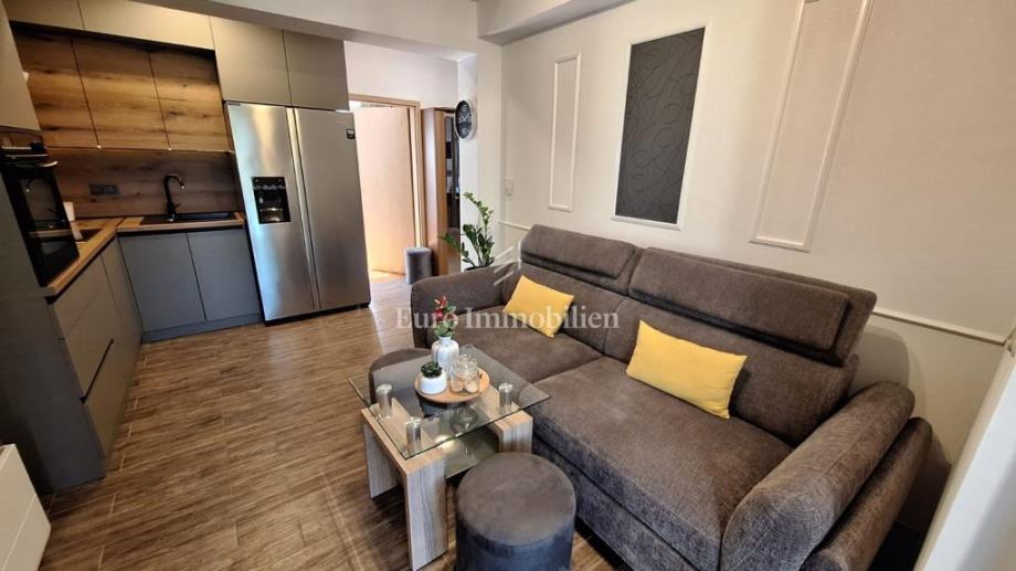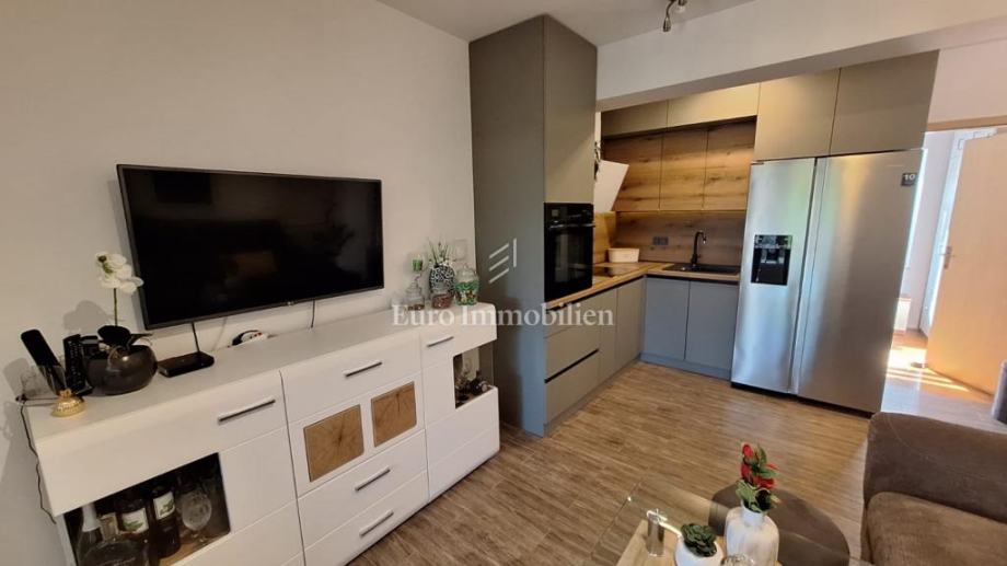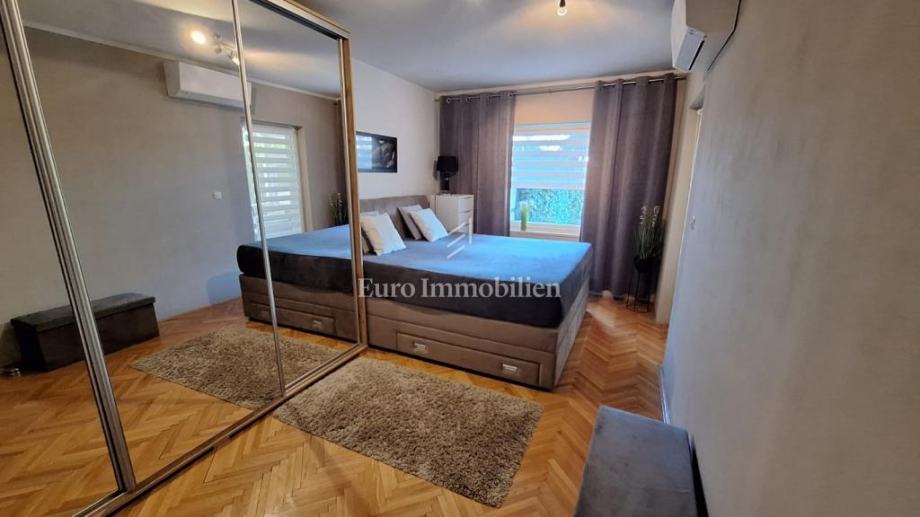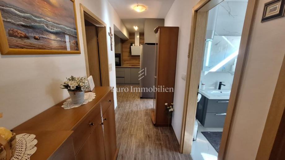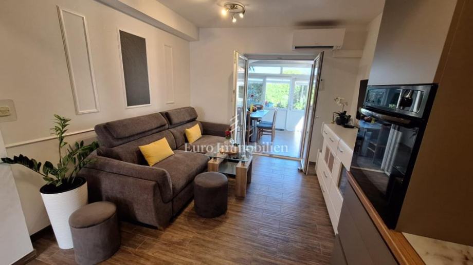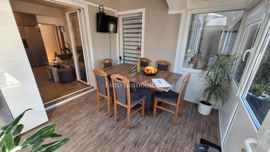 Stan površine 51,48 m2 nalazi se u prizemlju stambene zgrade. Sastoji se od hodnika, dvije spavaće sobe, ostave, kupaonice, open space kuhinje s dnevnim boravkom i blagovaonicom i zatvorene loggie. Stan je kompletno renoviran 2022. godine, tada su promijenjene i instalacije struje i vode. Grijanje i hlađenje putem klima uređaja i dizalice topline. Na lijepo uređenoj okućnici nalazi se spremište, roštilj i mjesto za druženje. Na raspolaganju su dva natkrivena parkirna mjesta.
