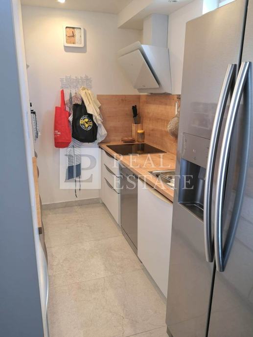 Stan u površini od 54m2 ima dnevni boravak, kuhinju s blagovaonom, spavaću sobu, kupaonicu i terasu s pogledom na more.