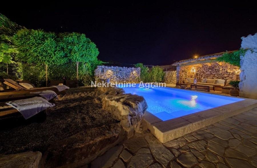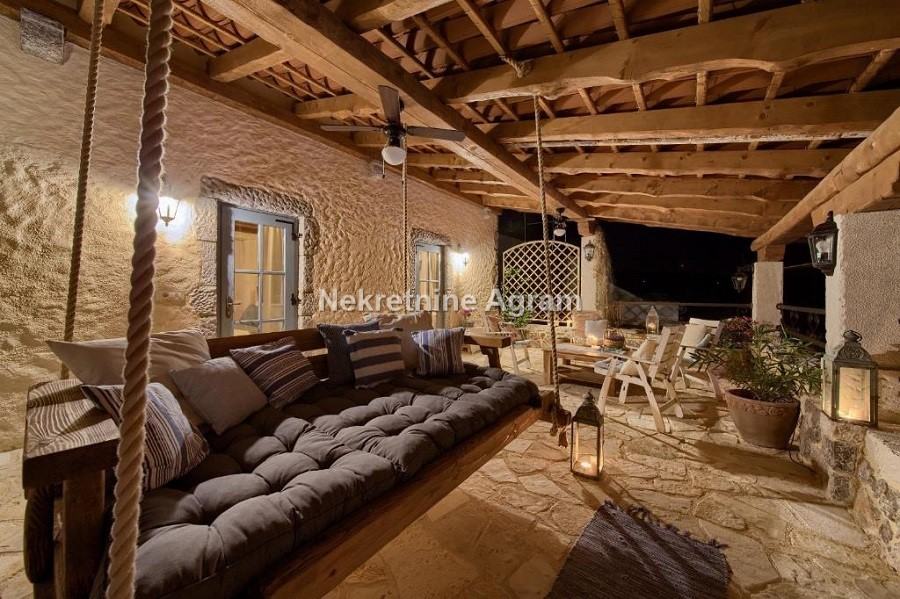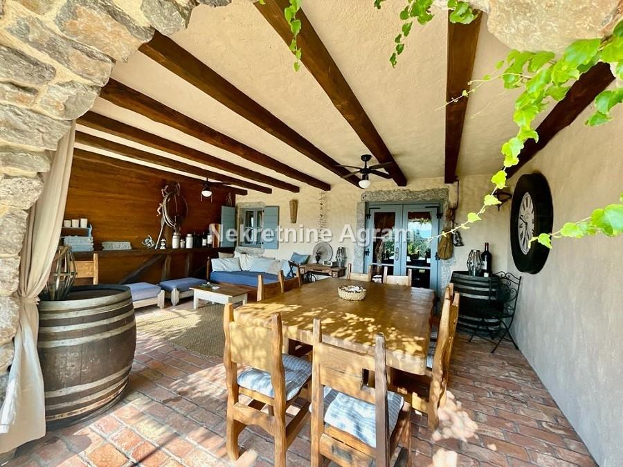 Prodaje se kompletno i izuzetno kvalitetno novoadaptirana i opremljena( antički stil) villa s bazenom na prekrasnoj lokaciji i pogledom na more.Ugrađene su sve nove instalacije, dizalica topline -regulacija topline u svakoj sobi zasebna-fan coil sustav,podno grijanje u kupaonama,vrhunska toplinska izolacija cijele kuće, kompletno opremljena i namještena, priključak na gradsku kanalizaciju.Villa zbog položaja osigurava maksimalnu privatnost.