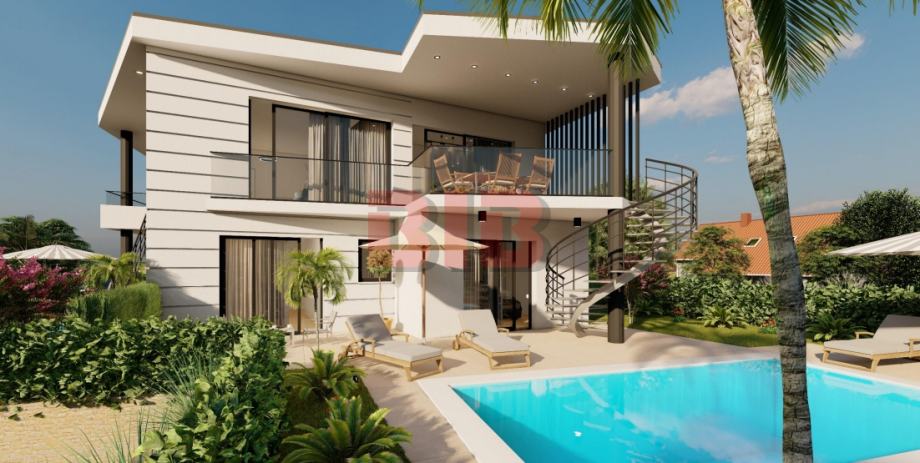 Vrhunska gradnja i oprema, alu stolarija, podno grijanje-dizalica topline,klima uređaji, grijani bazen, talijanska keramika I. klase, njemački parket I. klase, sanitarna oprema brendova Villeroy&Boch, Grohe i Hansgrohe itd.