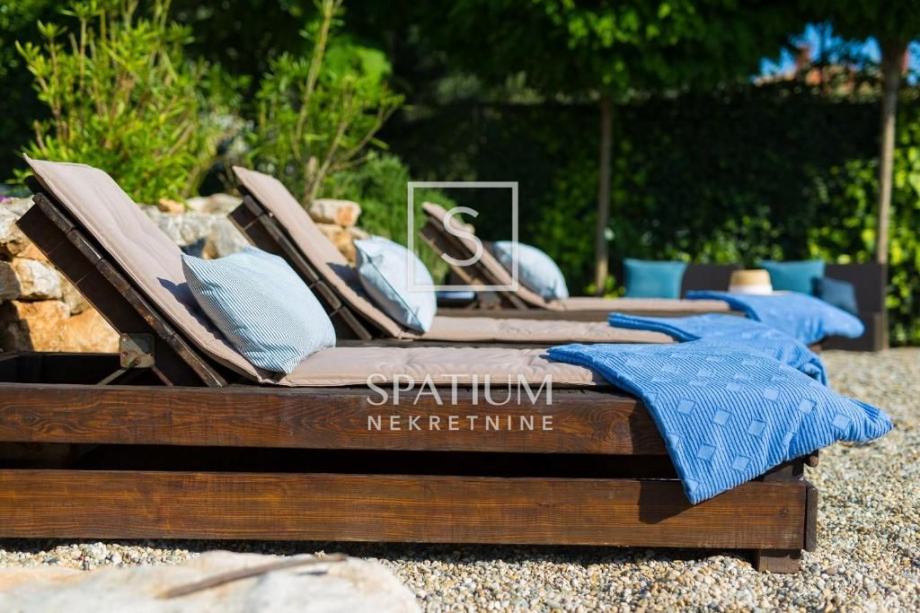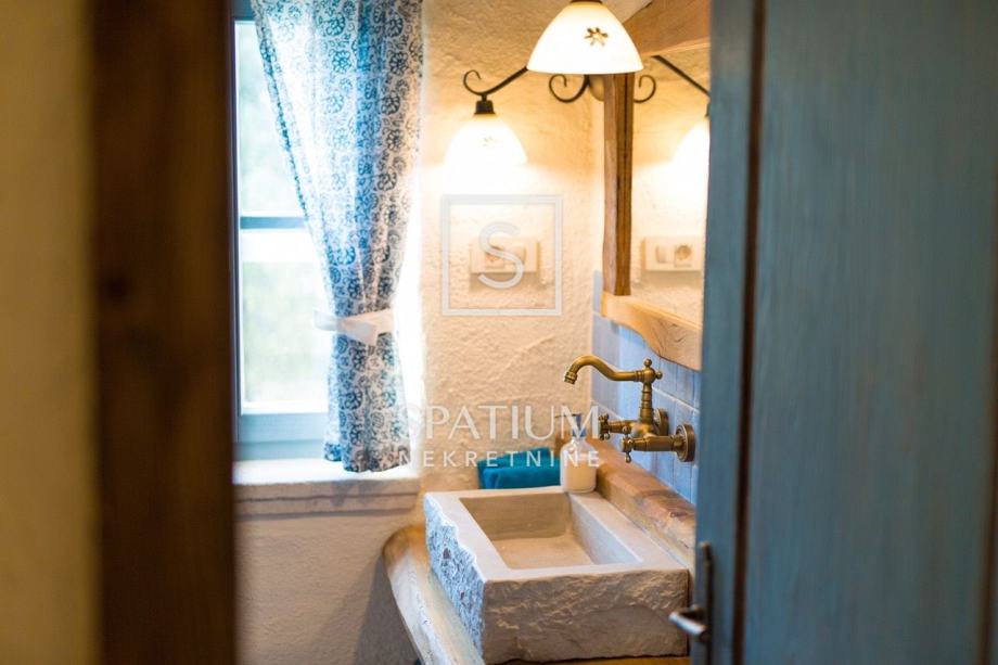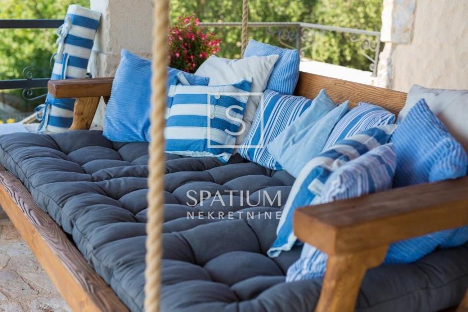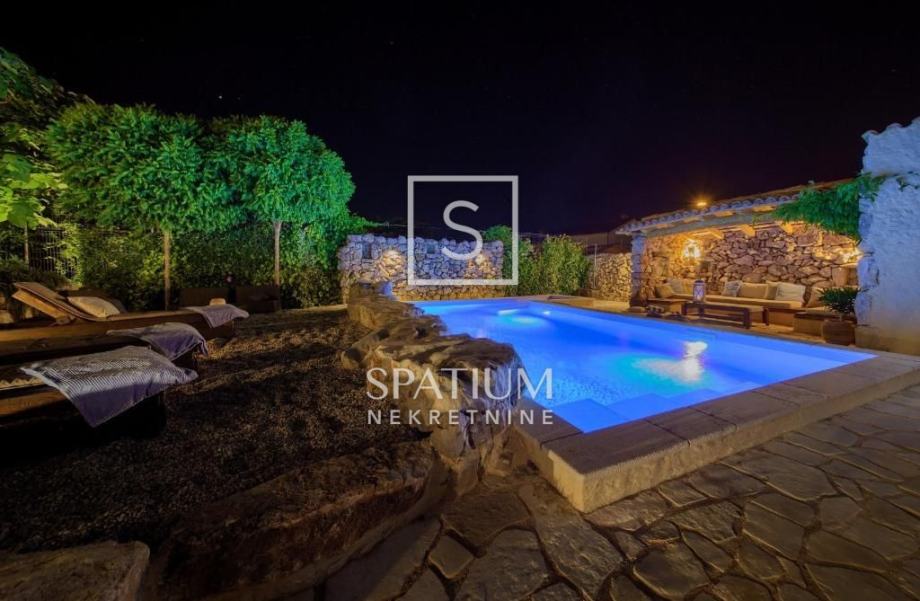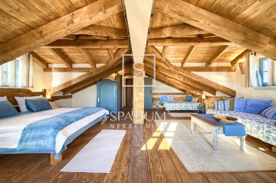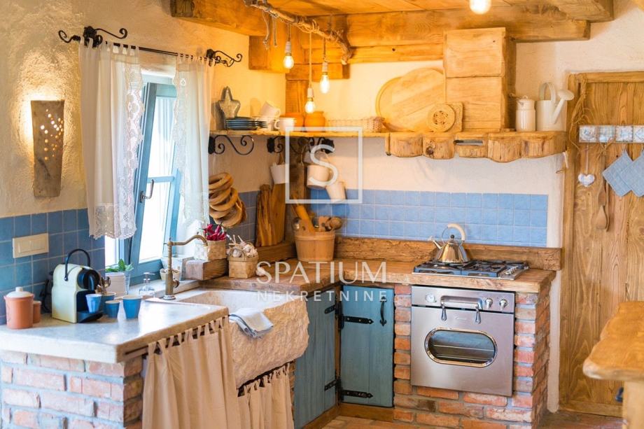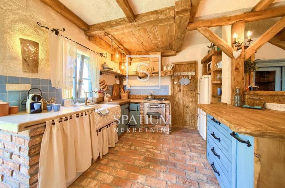 MALINSKA, u ponudu smo dobili rustikalnu kamenu vilu od 220 m2 s bazenom i pogledom na more. Prizemlje se sastoji od ulaznog prostora, kuhinje i blagovaone te prostranog dnevnog boravka s kaminom i izlazom na lođu. Na prvom katu se nalaze dvije spavaće sobe i kupaona. Svaka soba ima svoj izlaz na natkrivenu terasu, s koje se pruža prelijep panoramski pogled. U potkrovlju se nalaze još dvije spavaće sobe i kupaona. Interijer nekretnine u potpunosti je opremljen novim, kvalitetnim tehničkim uređajima i unikatno dizajniranim namještajem. Na prostranoj okućnici od 959 m2 nalazi se pomoćna zgrada, vinski podrum, bazen, kameni stol s klupama i roštilj te je na okućnici uređen prostor za tri parkirna mjesta. Vanjski prostor vile ograđen je kamenim zidovima i vrtom s mediteranskim biljem, uz automatizirani sustav navodnjavanja za grijanje vile moguće je koristiti toplinsku pumpu, kamin, podno grijanje u kupaonicama. Nekretnina je idealna prilika za bavljenje turističkom djelatnošću, kao i za dugoročan miran obiteljski život.