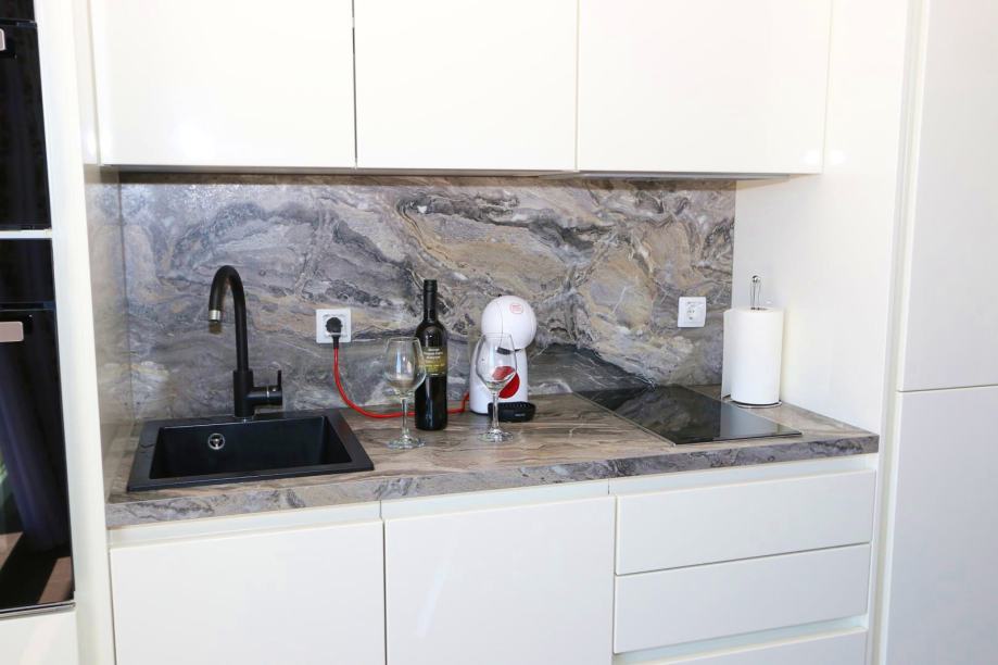 Apartman je udaljen od mora 200 m, što je ujedno udaljenost i do prvih kafića i restorana uz plažu. Lokalna trgovina udaljena je pješke 250 m, a Konzum, ljekarna i dječji park udaljeni su 400 metara.