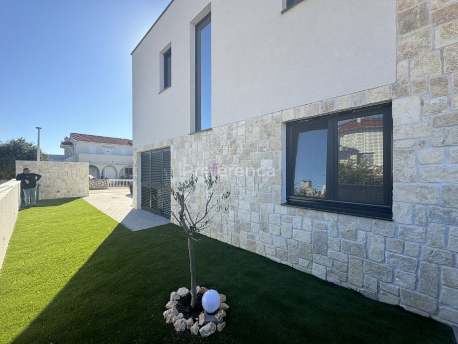 Uređeno dvorište nudi i dva parkirna mjesta za automobile, ugrađeni i auto punjači za električna vozila. Villa ima video nadzor i mogućnost upravljanja putem mobitela. Fasada djelomično obložena vrhunskim prirodnim kamenom, izolacija fasade 15 centimetara.