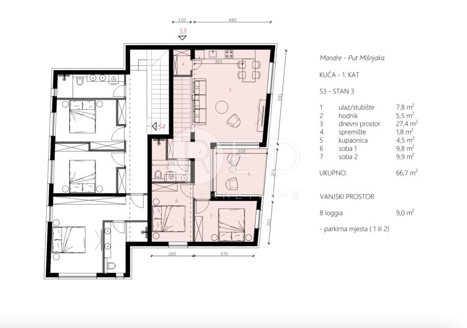 1 vanjska parkirno mjesto (Mogućnost kupovine dodatnog parkirnog mjesta)