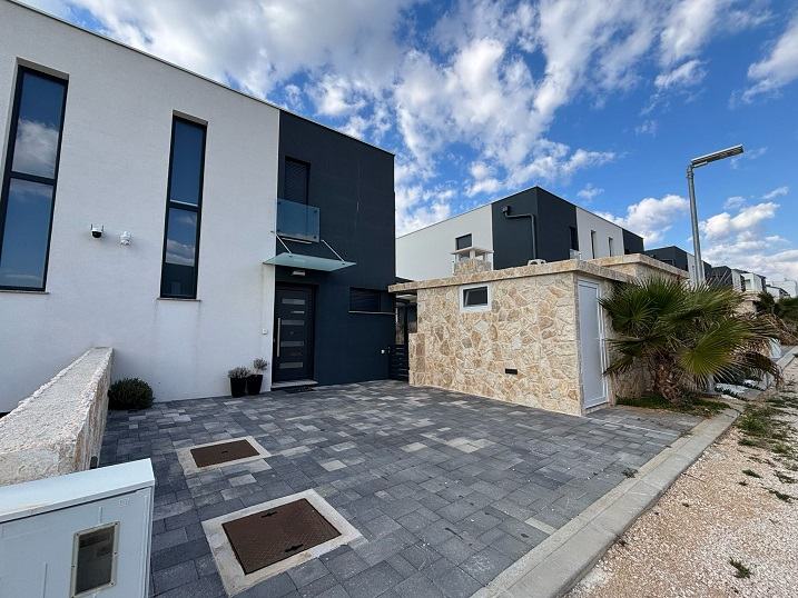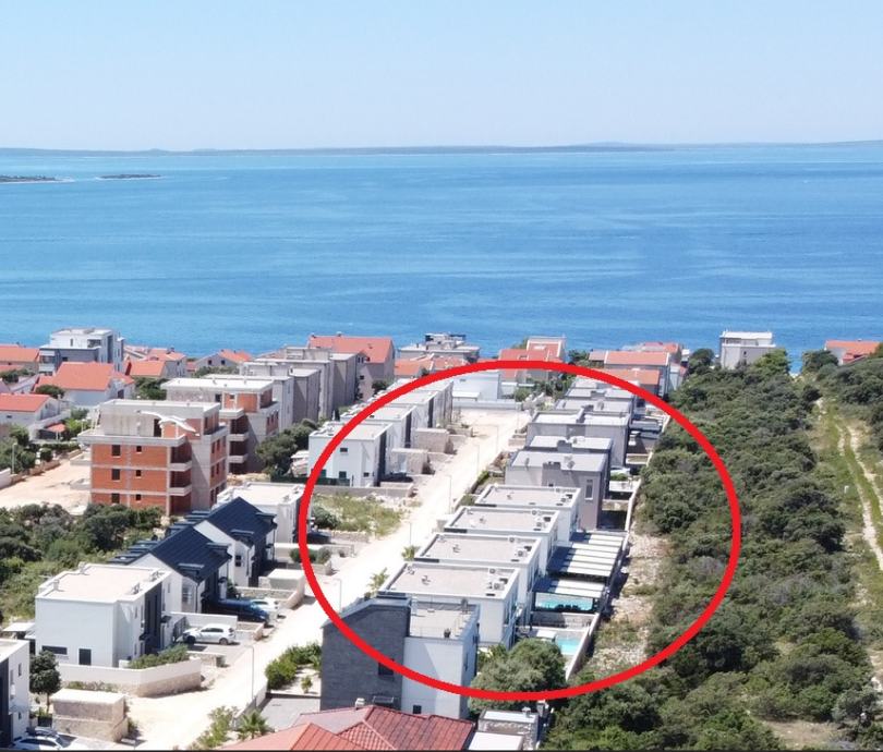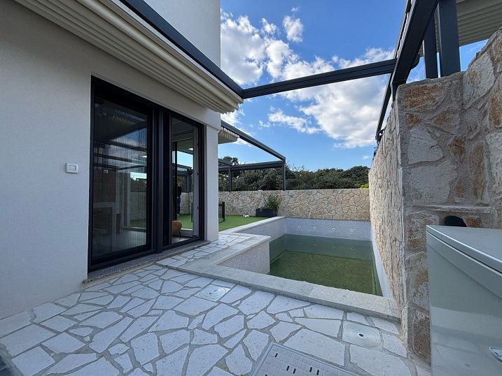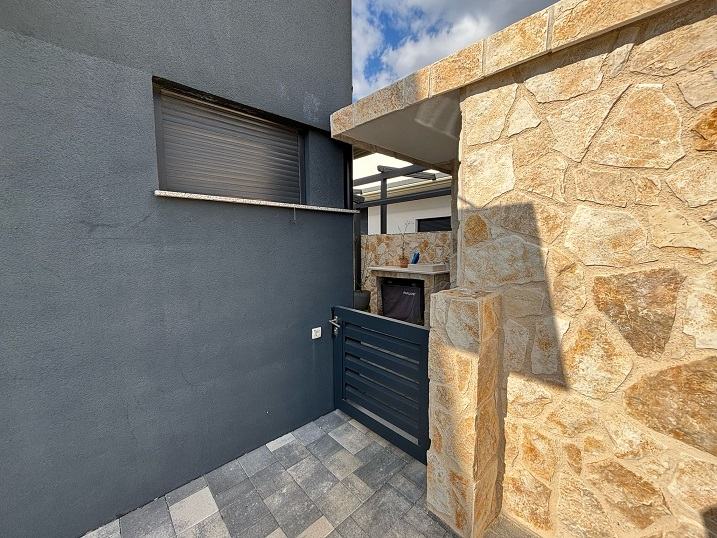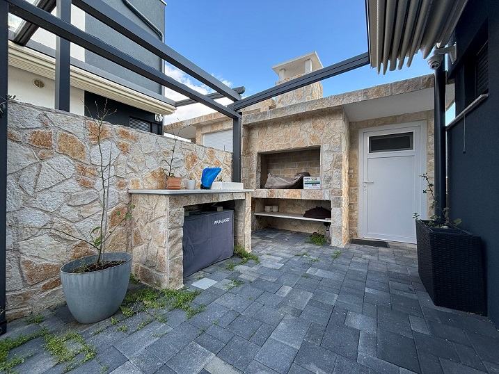 Prodaje se dvoetažni, 4-sobni apartman s vlastitim ulazom, dvorištem i bazenom, u naravi kuća u nizu izgrađena 2021. godine u Mandrama, Ulica Brune Bušića.