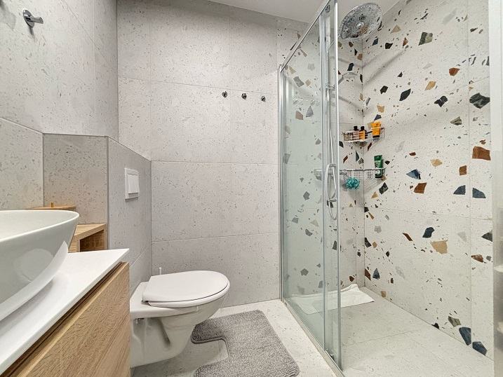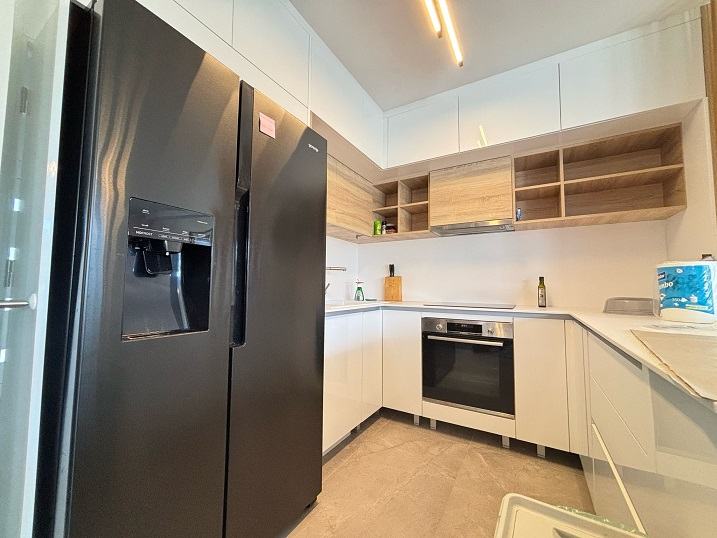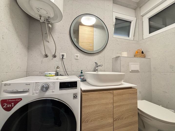 Apartman je opremljen namještajem po mjeri i klimatiziran s više klima uređaja.