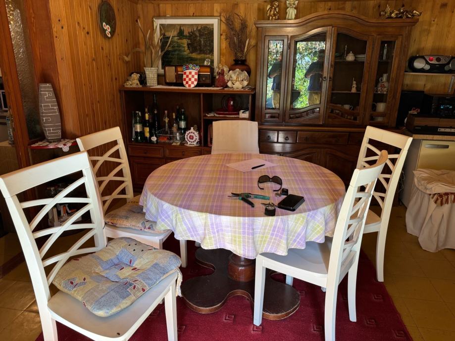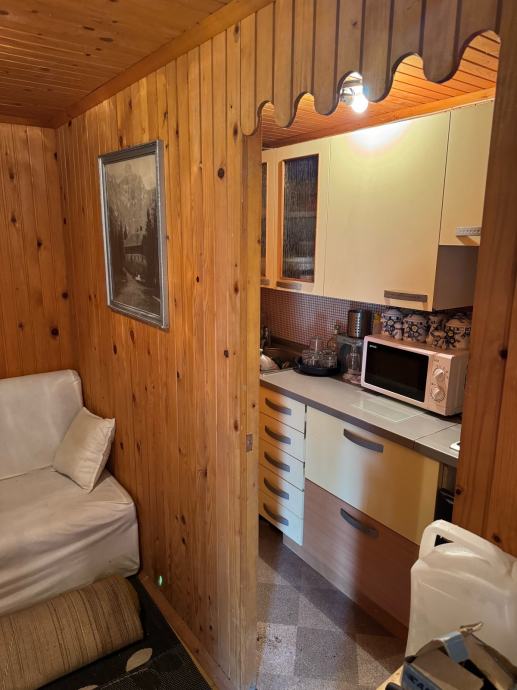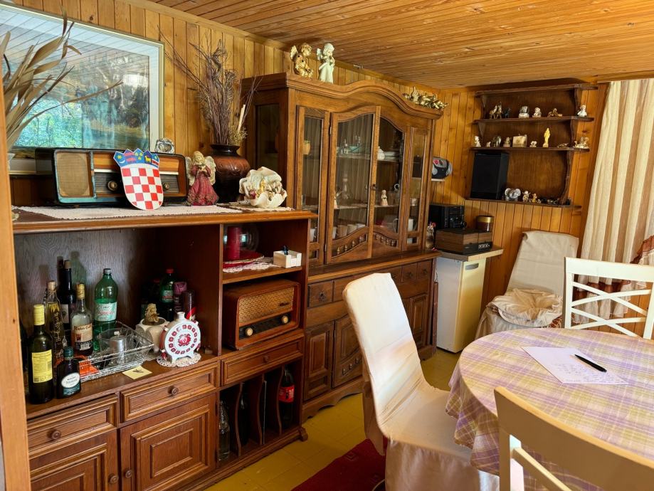 Kuća se sastoji od prizemnog dijela koji se sastoji od kuhinje blagovaonice i boravka. U potkrovlju je jedna velika prostorija. Wc je sa vanjske strane odmah uz kuću. 0911226677.