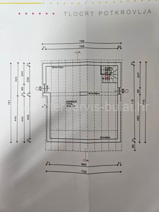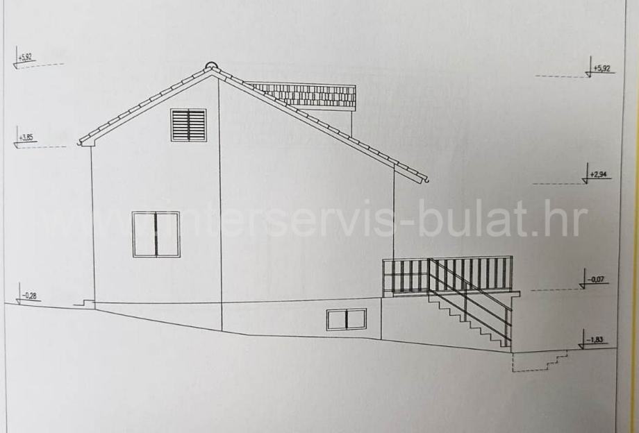 U potkrovlju, na površini od 45 m², nalazi se neuređena prostorija koja se može urediti kao stambeni prostor. Kuća posjeduje gusternu, agregat za struju i septičku jamu.
