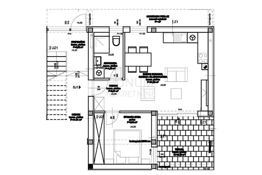 Na prodaju je stan u prizemlju ukupne korisne površine 54 m². Stambeni dio zauzima 39,37 m², a stan ima izlaz na terasu površine 10,10 m². Pripada mu i mali vrt od 5 m² te parkirališno mjesto od 12,5 m². Ovaj stan kompaktnih dimenzija idealan je za parove, manje obitelji ili kao investicija za najam.