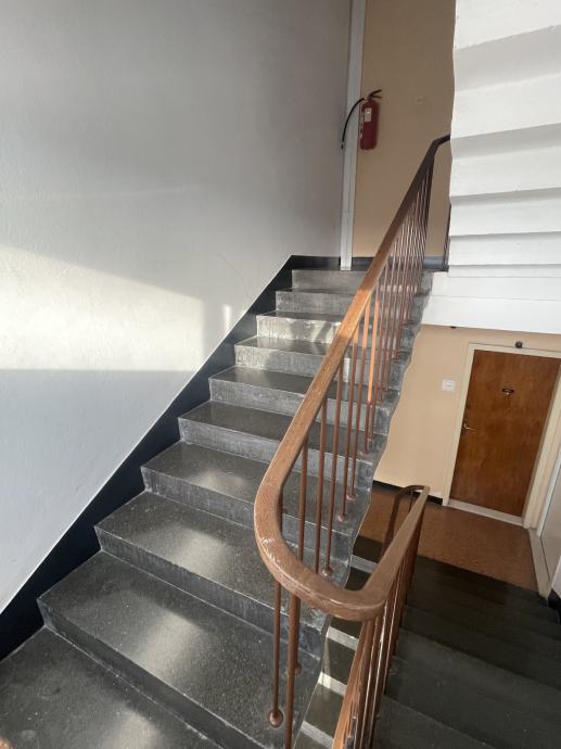 Stan je smješten na petom katu stambene zgrade (bez lifta), te je ukupne unutarnje površine 40 m2 + 7 M2 zatvorene lođe.