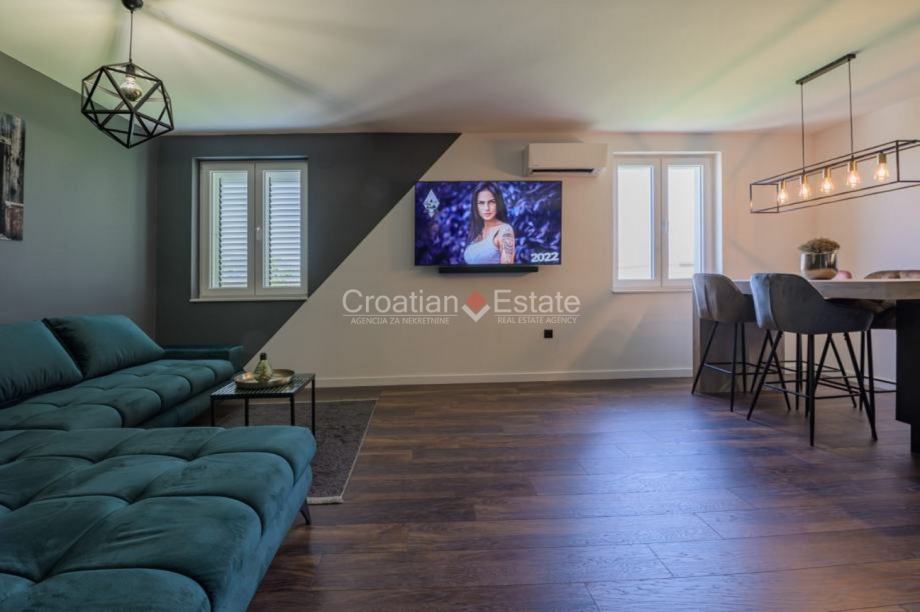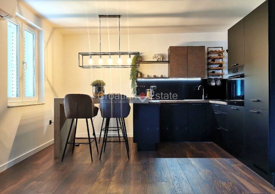 Stan je kompletno renoviran 2022.g i potom opremljen modernim i kvalitetnim namještajem, vrhunskim aparatima i dva klima uređaja.