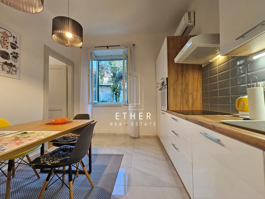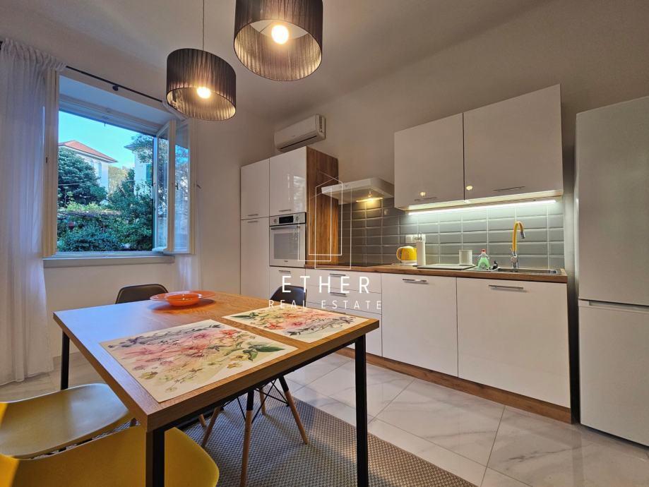 Klimatiziran, opremljen namještajem i uređajima.