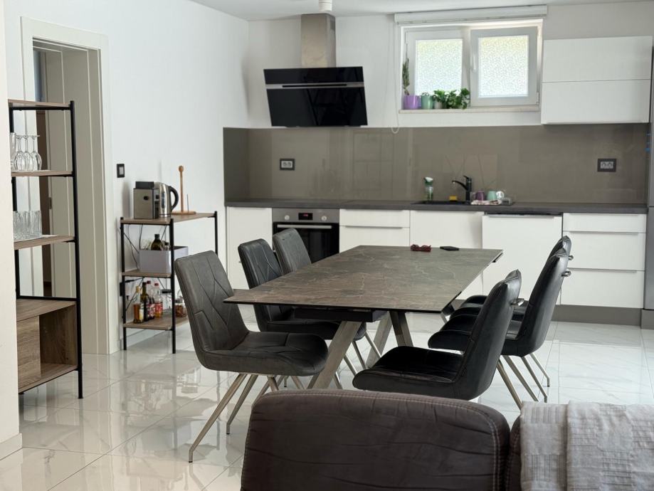 Stan se nalazi u prizemlju kuće, ima 88 m2, a sastoji se od dvije spavaće sobe s vlastitim kupaonicama, kuhinje s blagovaonom i dnevnim boravkom te prostor za sjedenje ispred stana. Svaka soba i dnevni boravak su klimatizirani i imaju televiziju. Kupaonice imaju podno grijanje. U stanu je proveden optički internet. Stan je kompletno opremljen i novouređen. Mogućnost korištenja zajedničkog bazena i roštilja uz dogovor s vlasnikom stana. Osigurano jedno parkirno mjesto. Manji psi su dopušteni.
