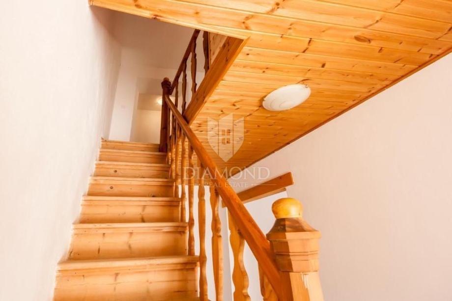 Kuća se prostire na dvije etaže + potkrovlje, ukupne površine 132 m2. U prizemlju se nalazi prostrana kuhinja, blagovaonica sa dnevnim boravkom, kupaonica i jedna trenutno prazna prostorija koja se može urediti prema potrebama budućih vlasnika, idealna kao spavaća ili radna soba. Na katu se nalaze tri spavaće sobe i toalet.