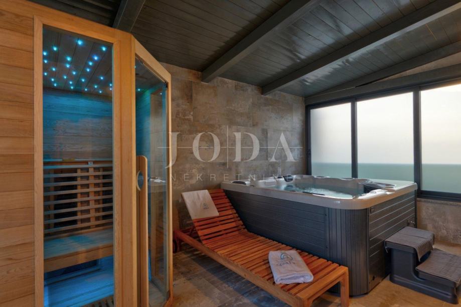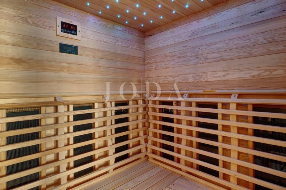 Osim spavaćih soba na katu se nalazi wellness oaza sa hidromasažnom kadom i saunom.
