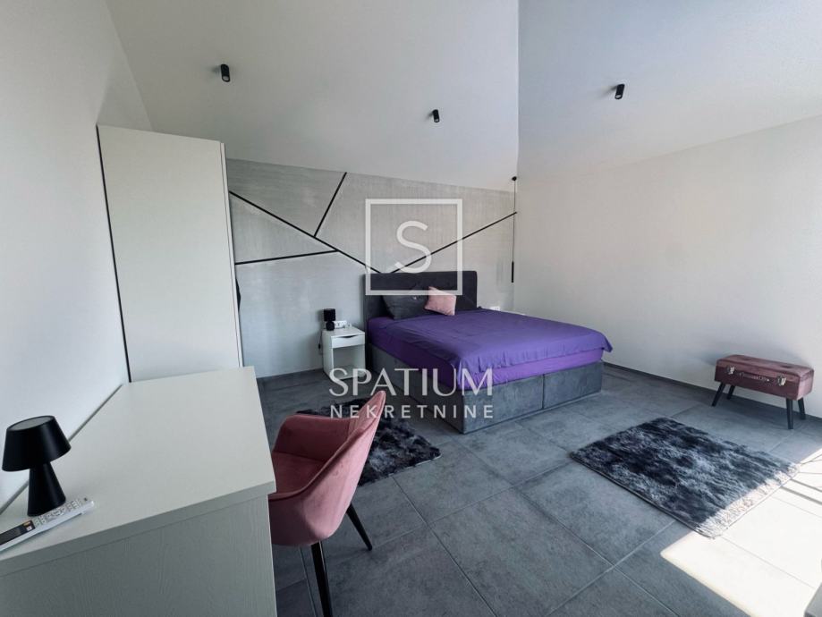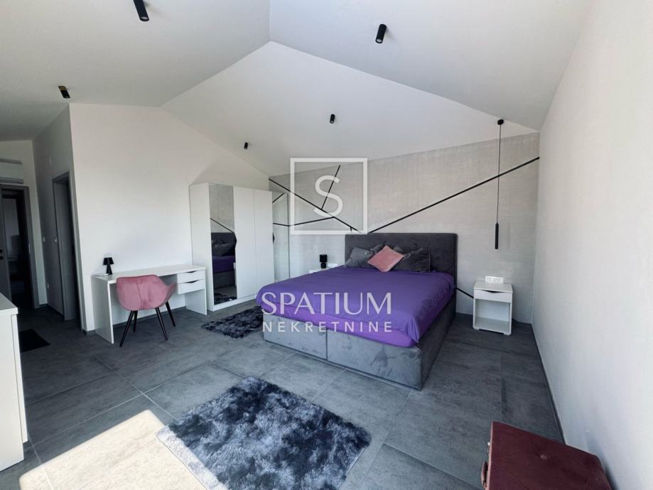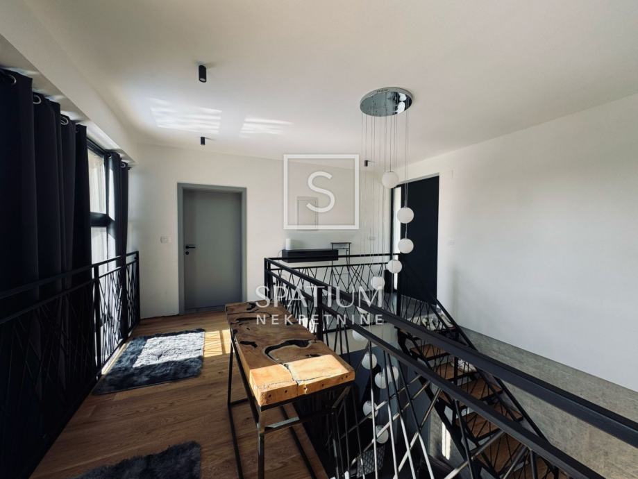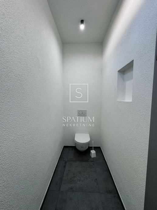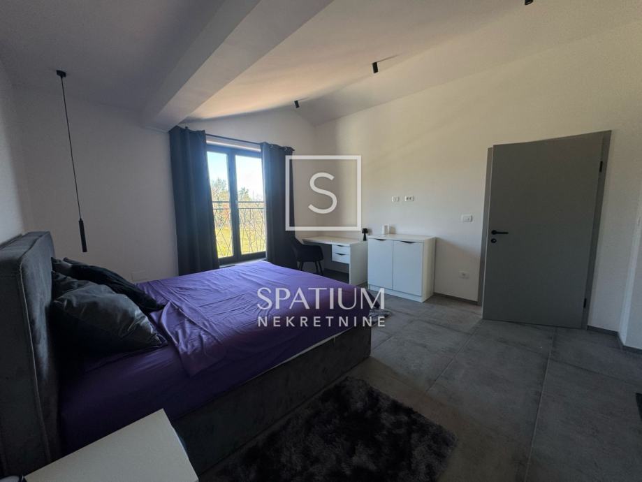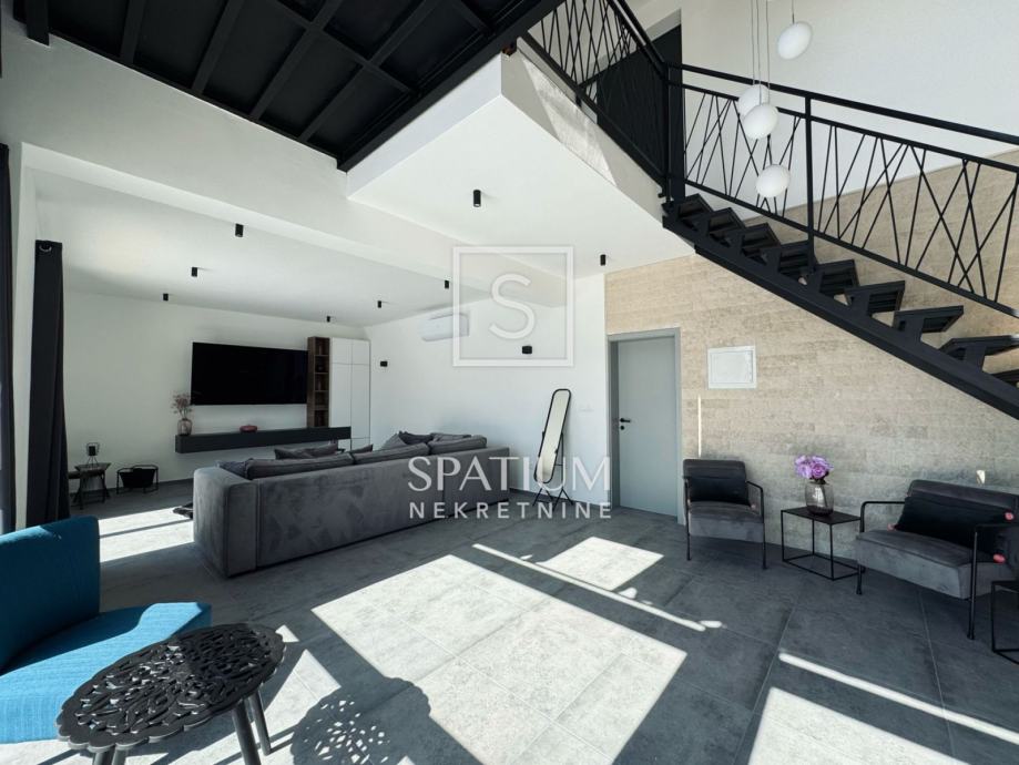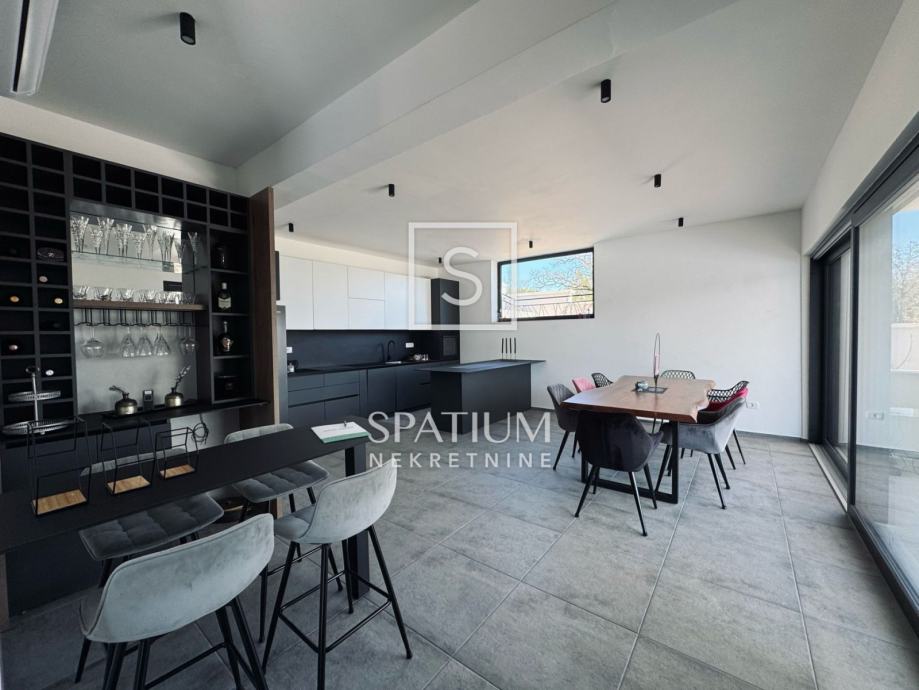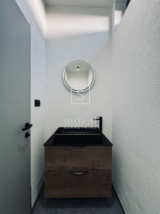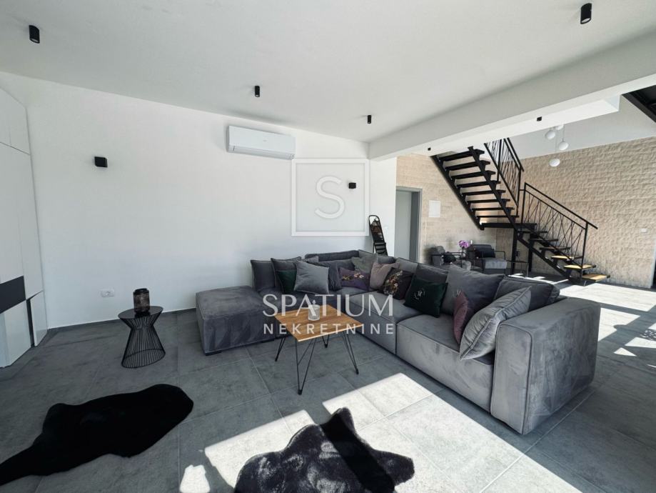 MARČANA, u ponudi imamo prekrasnu modernu vilu smještenu u mirnom okruženju nedaleko od Marčane. Vila se nalazi na parceli od 664 m². Vila se sastoji od suterena i prizemlja ukupne površine 268 m². U suterenu se nalaze svijetli ulazni hodnik, ostava, toalet, kuhinja s blagovaonicom, prostrani dnevni boravak s izlazom na natkrivenu terasu i bazen od 36 m², kao i strojarnica za bazen. Na katu su smještene tri spavaće sobe, svaka s vlastitom kupaonicom, te praonica rublja. Vila je klimatizirana, ima uređeni vrt, parking za 2–3 automobila i prodaje se potpuno opremljena i namještena.