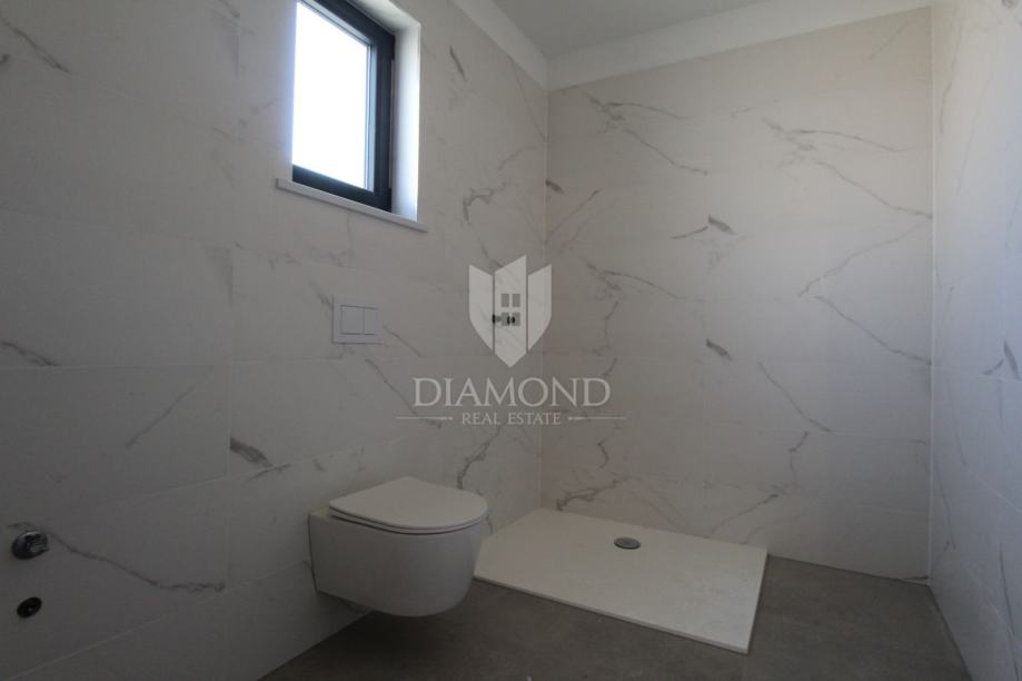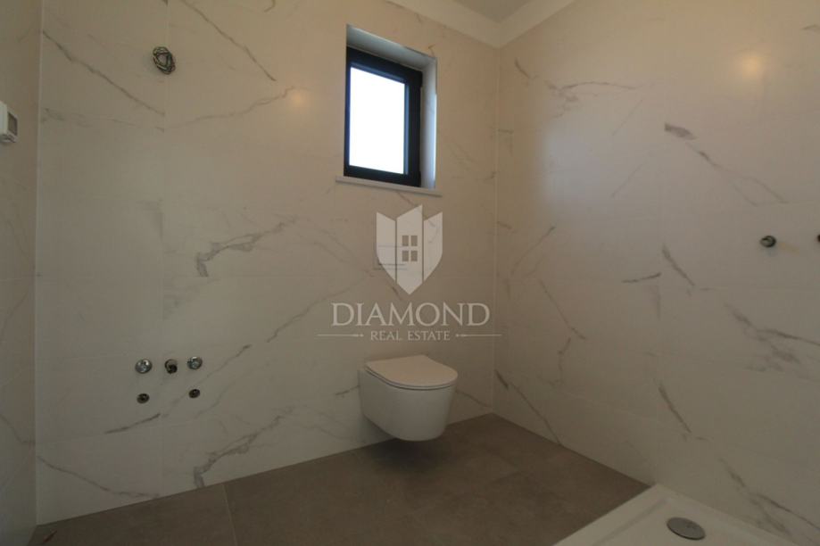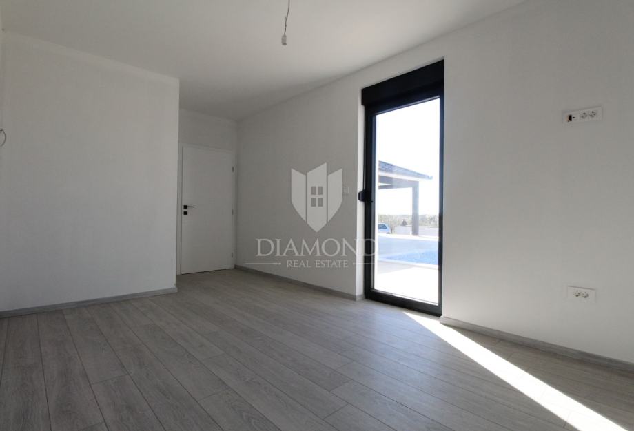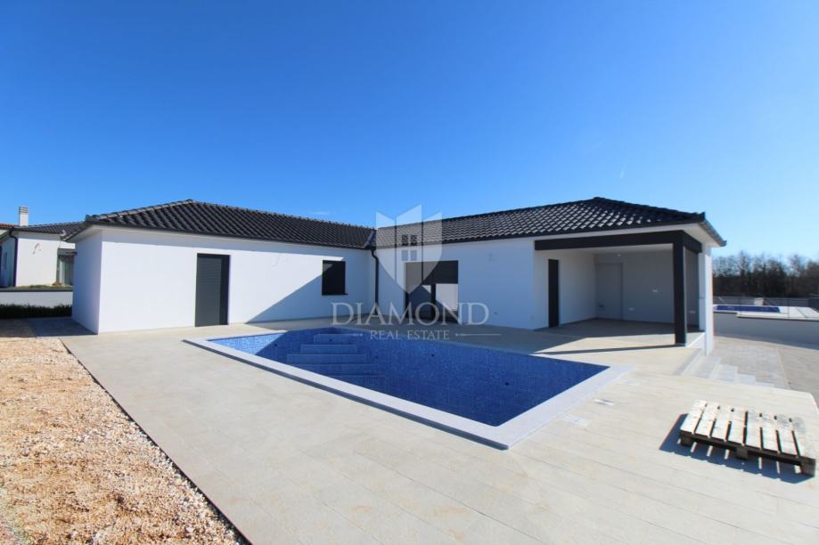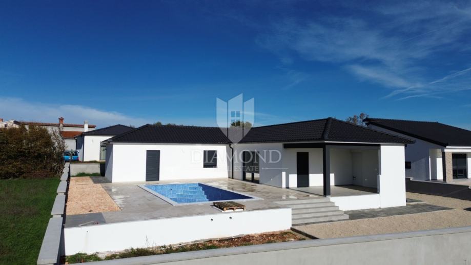 Prodaje se moderna prizemnica u Marčani, novogradnja površine 115 m² s natkrivenom terasom od 20 m². Kuća se sastoji od tri spavaće sobe, svaka s vlastitom kupaonicom, dodatnog WC-a, prostranog dnevnog boravka povezanog s kuhinjom i blagovaonicom. Jedna spavaća soba ima izlaz na bazen, a dnevni boravak također vodi direktno na vanjski prostor.