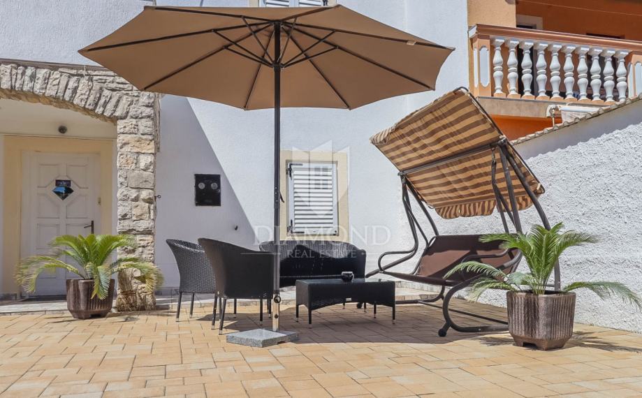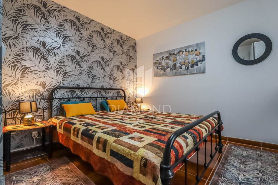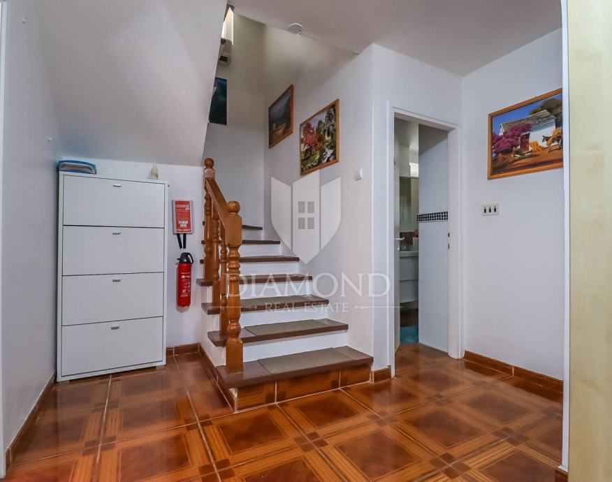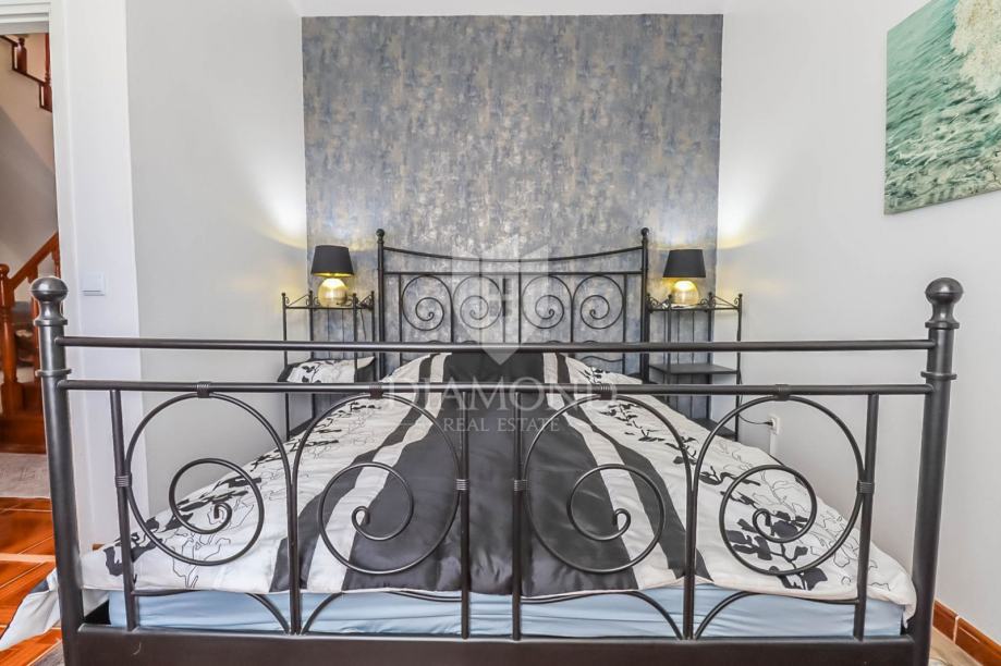 Ova kuća nalazi se na prostranoj okućnici od 1653m2 ukupne površine od 125m2 te se sastoji od kuhinje, blagovaonice, kupaonice i jedne spavaće sobe u prizemlju. Dok se na prvom katu nalaze dvije spavaće sobe, kupaonica i dnevni boravak. Potkrovlje kuće je adaptirano i koristi se trenutno kao dodatni smještaj. U sklopu okućnice nalazi se i garaža. Bazen se nalazi na posebno uređenom djelu okućnice sa sunčalištem i ljetnom kuhinjom.